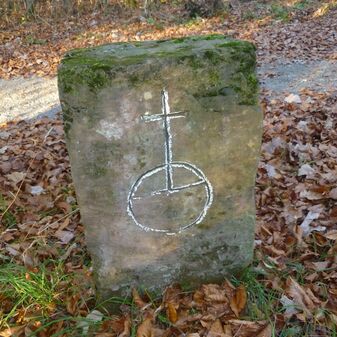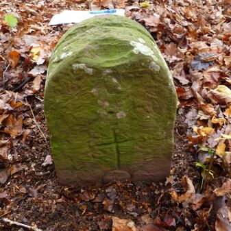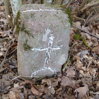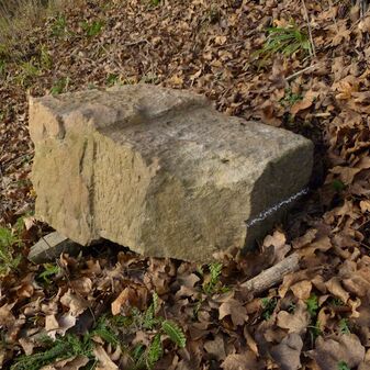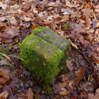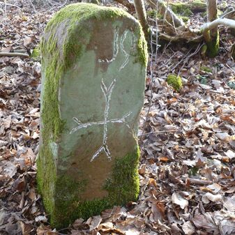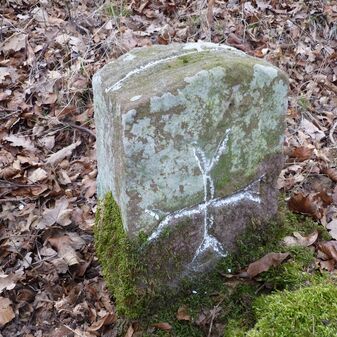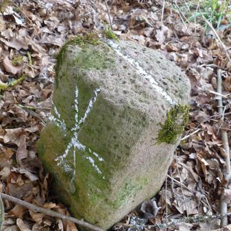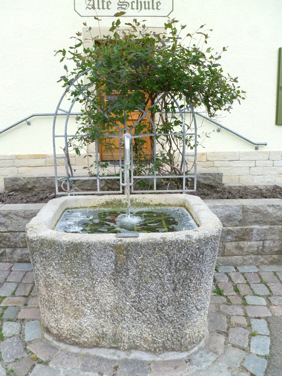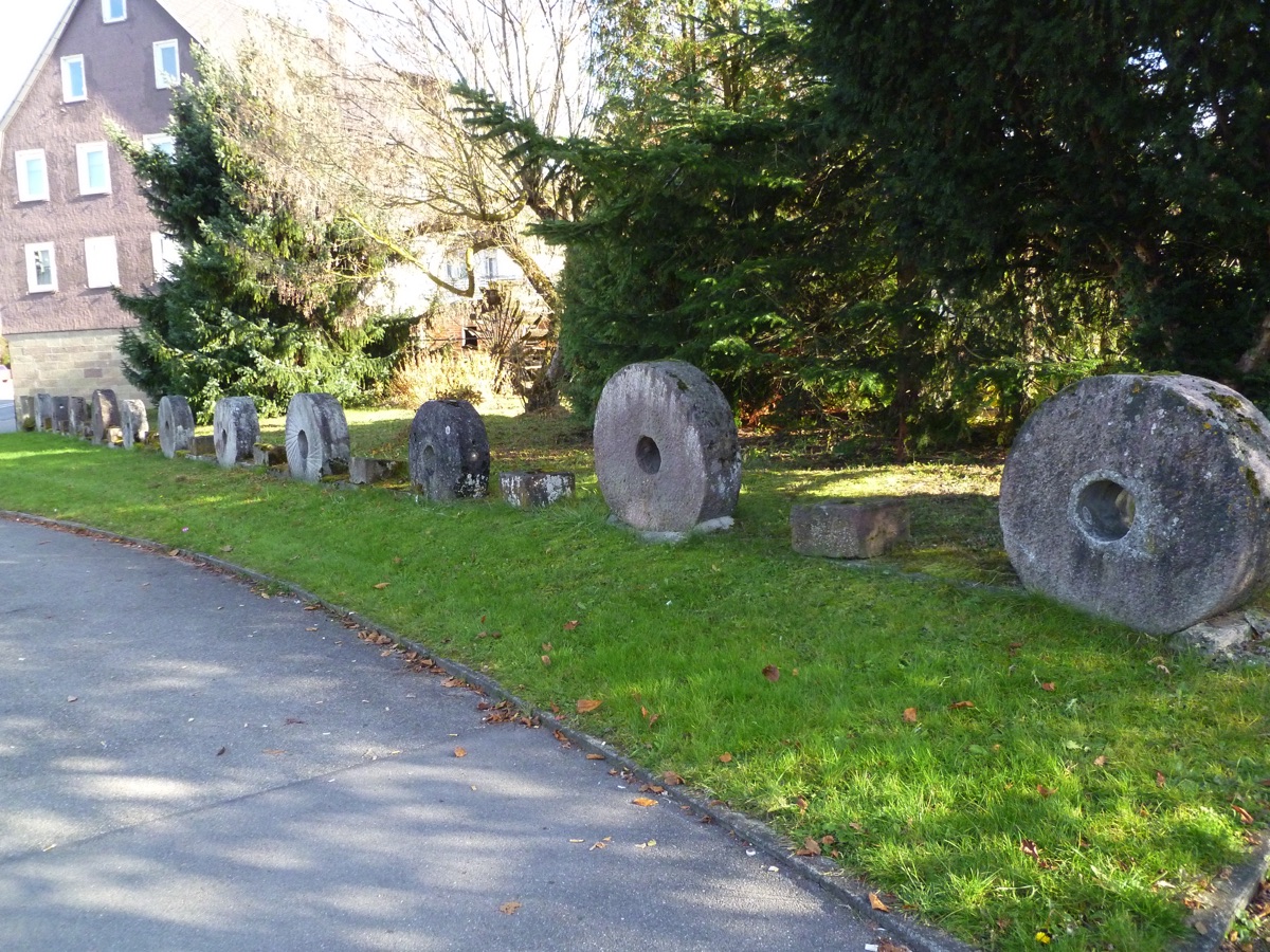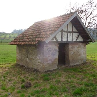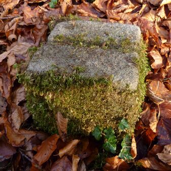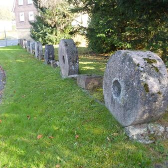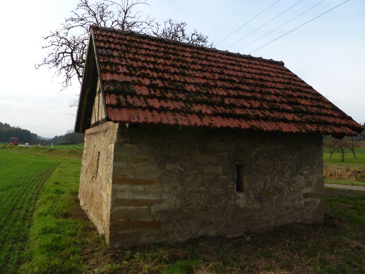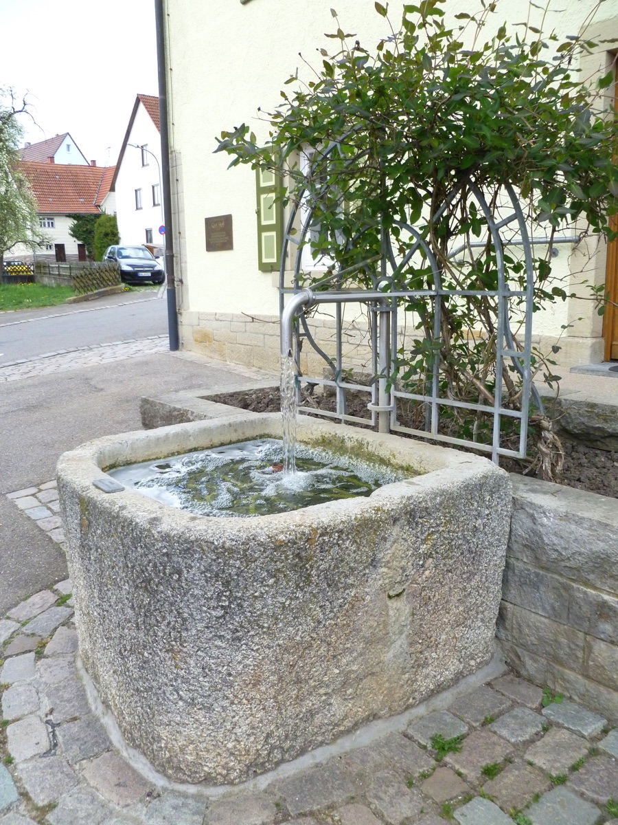 Gefallenendenkmal, bestehend aus einem Steinkreuz mit Inschrift und einer u-förmigen Mauer mit zwölf Platten, auf denen die Lebensdaten der Verstorbenen aufgelistet sind. Drei Stufen führen hinauf und hinter dem Kreuz befindet sich eine Inschrifttafel aus Gusseisen mit halbrundem Abschluss und Relief. Die Inschriften auf den Platten an der Mauer gedenken den Verstorbenen des Ersten und Zweiten Weltkriegs, die Inschrift auf der gusseisernen Platte gedenkt den Gefallenen des Krieges von 1870/71. Gut erhalten, ca. 4m hoch, 6m breit und 3m tief.