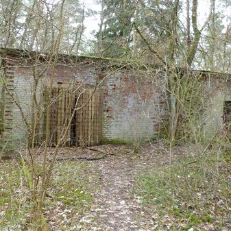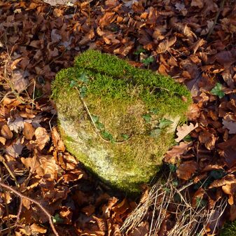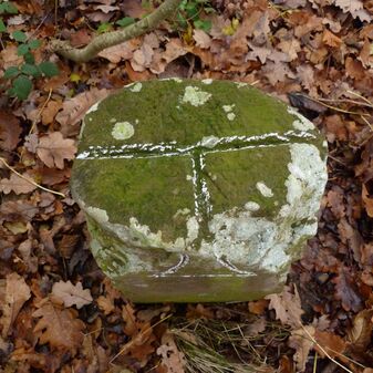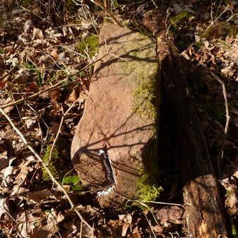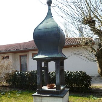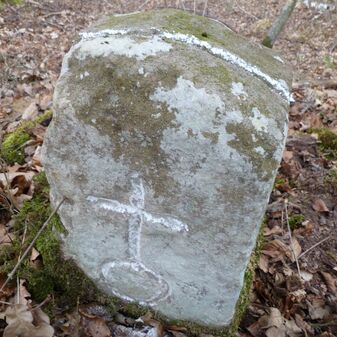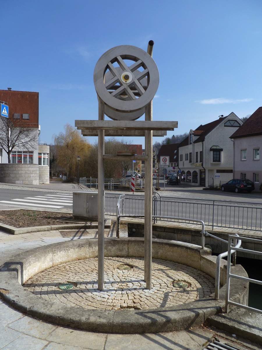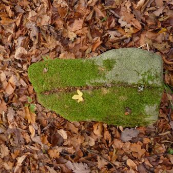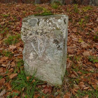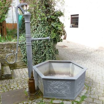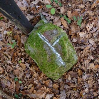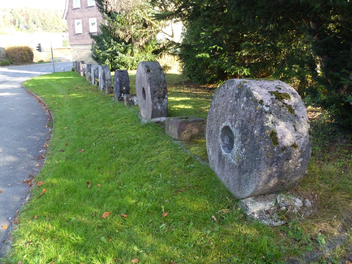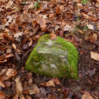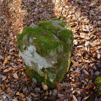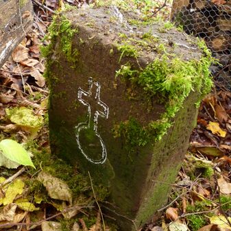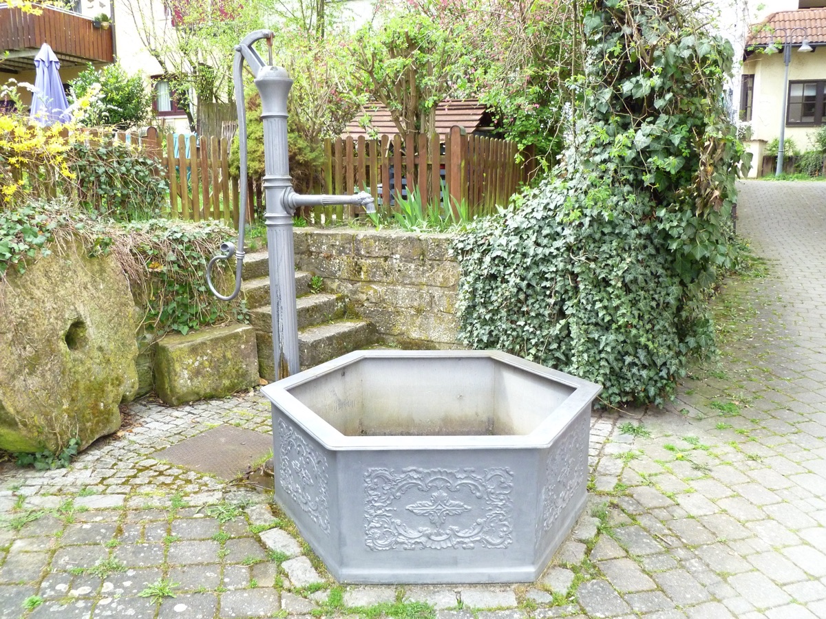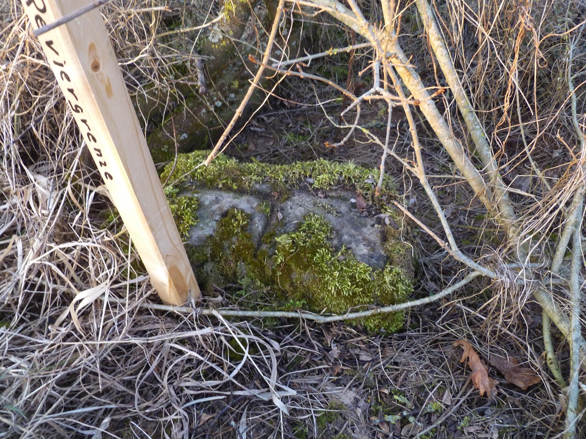 Gefallenendenkmal, bestehend aus einem Steinkreuz mit Inschrift und einer u-förmigen Mauer mit zwölf Platten, auf denen die Lebensdaten der Verstorbenen aufgelistet sind. Drei Stufen führen hinauf und hinter dem Kreuz befindet sich eine Inschrifttafel aus Gusseisen mit halbrundem Abschluss und Relief. Die Inschriften auf den Platten an der Mauer gedenken den Verstorbenen des Ersten und Zweiten Weltkriegs, die Inschrift auf der gusseisernen Platte gedenkt den Gefallenen des Krieges von 1870/71. Gut erhalten, ca. 4m hoch, 6m breit und 3m tief.