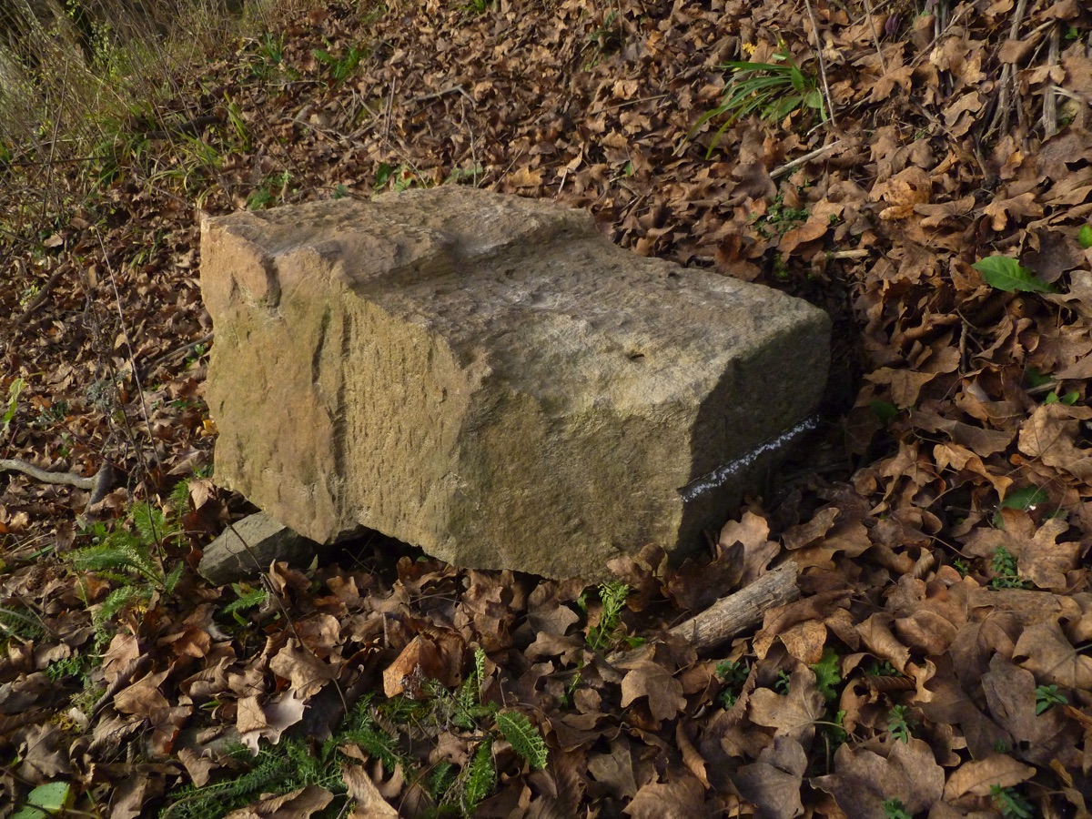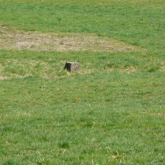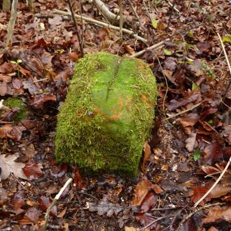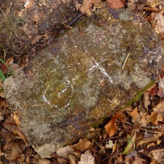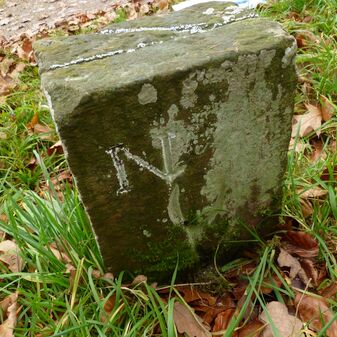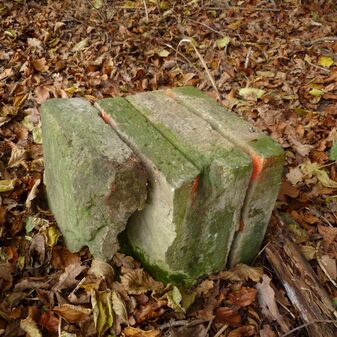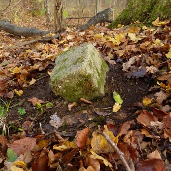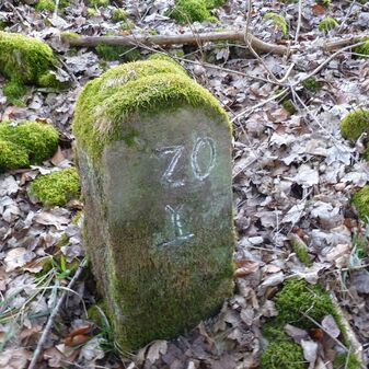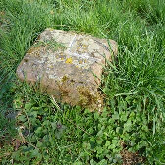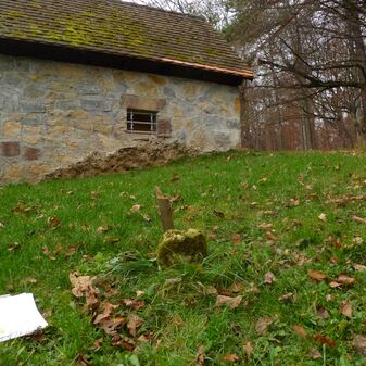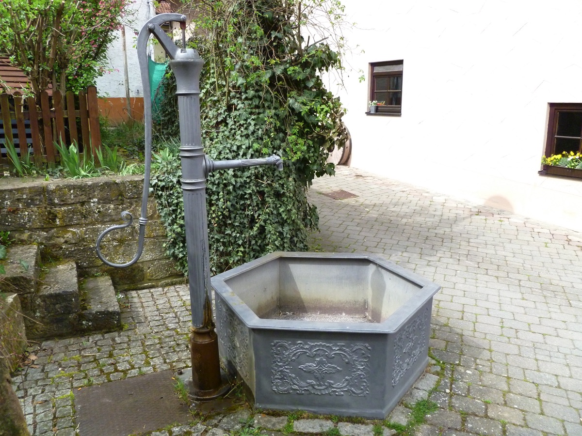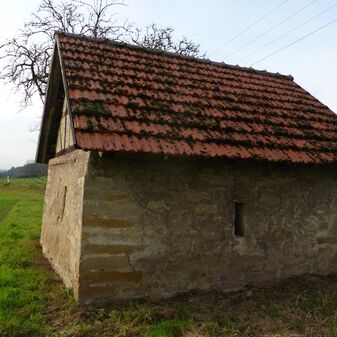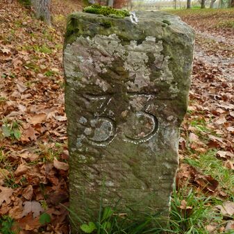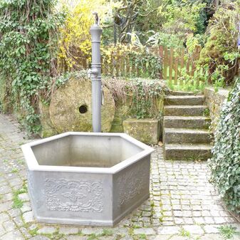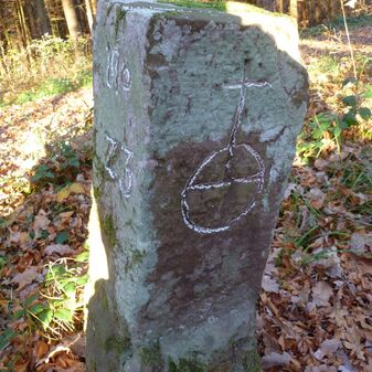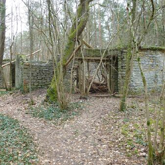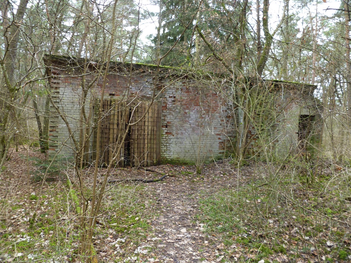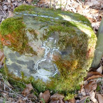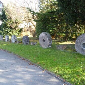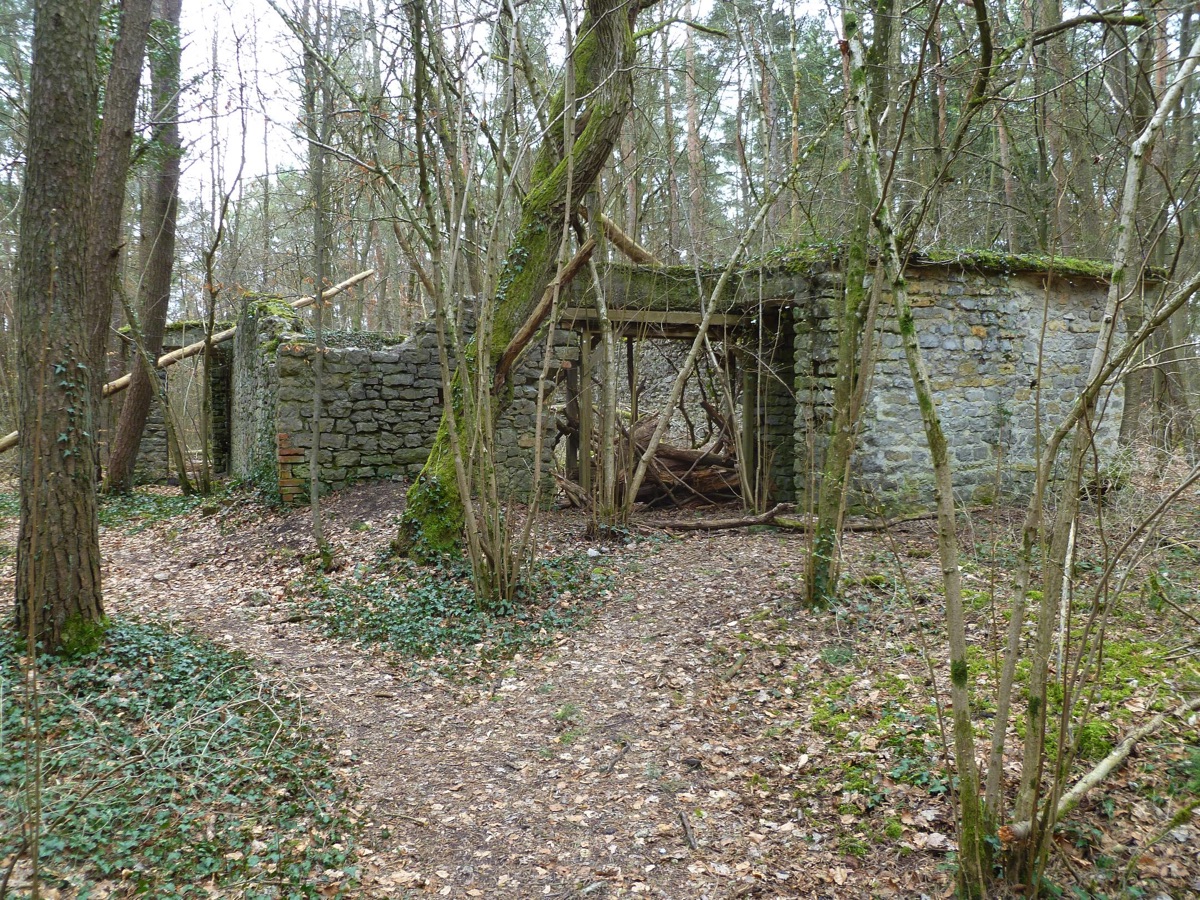 Gefallenendenkmal, bestehend aus einem Steinkreuz mit Inschrift und einer u-förmigen Mauer mit zwölf Platten, auf denen die Lebensdaten der Verstorbenen aufgelistet sind. Drei Stufen führen hinauf und hinter dem Kreuz befindet sich eine Inschrifttafel aus Gusseisen mit halbrundem Abschluss und Relief. Die Inschriften auf den Platten an der Mauer gedenken den Verstorbenen des Ersten und Zweiten Weltkriegs, die Inschrift auf der gusseisernen Platte gedenkt den Gefallenen des Krieges von 1870/71. Gut erhalten, ca. 4m hoch, 6m breit und 3m tief.