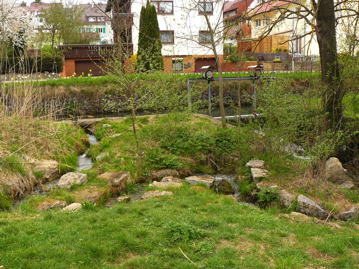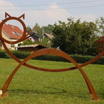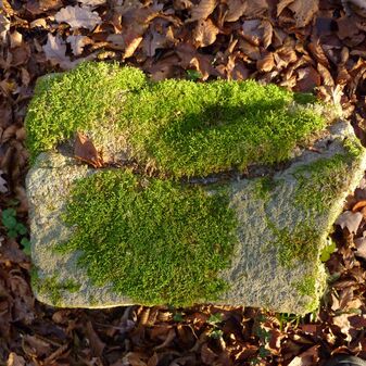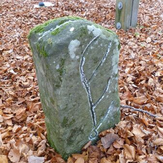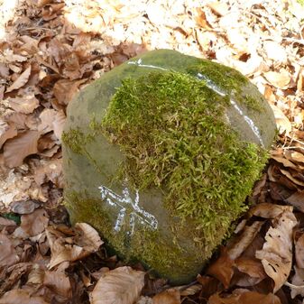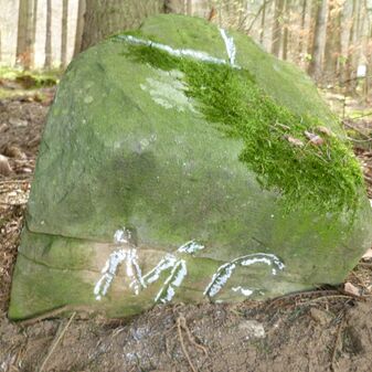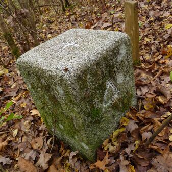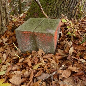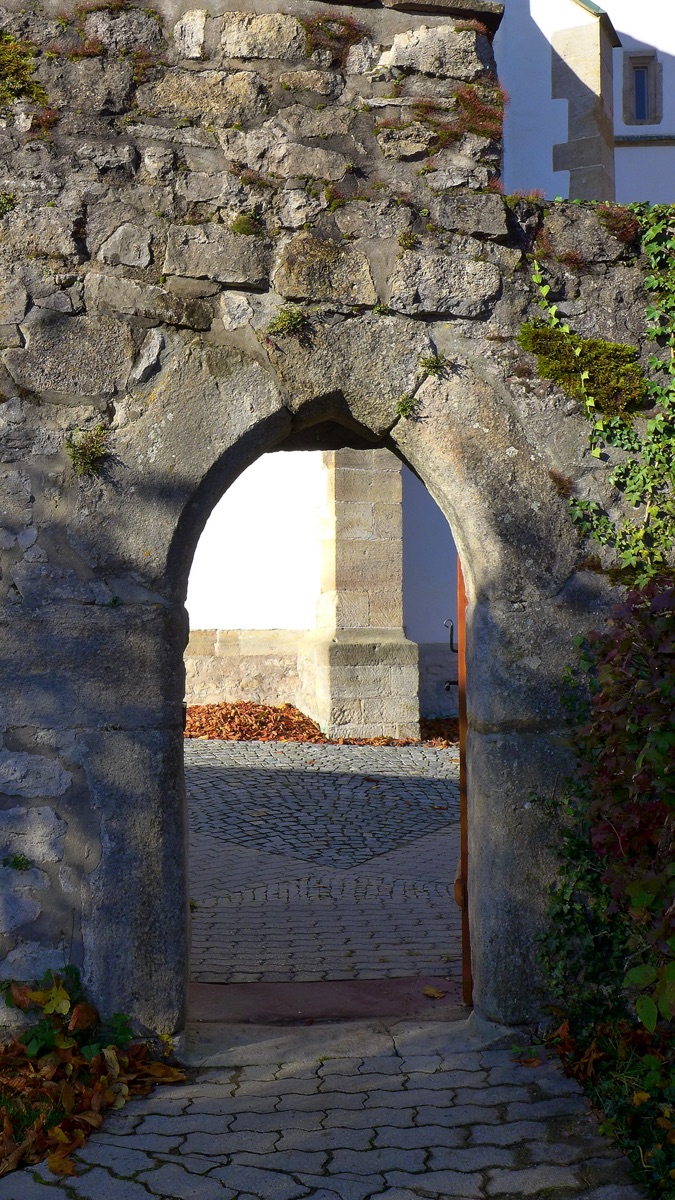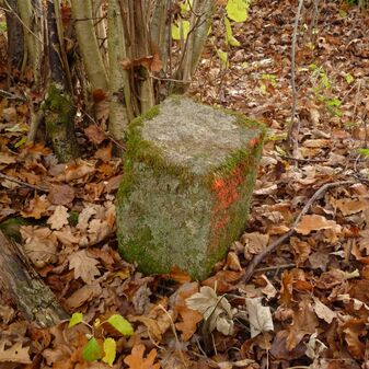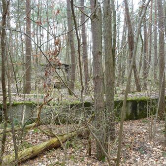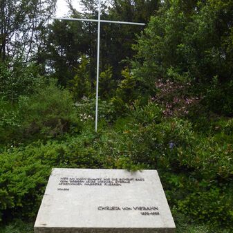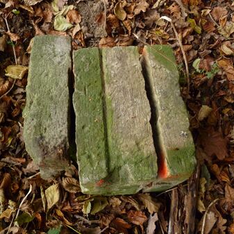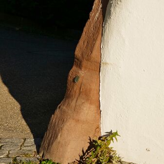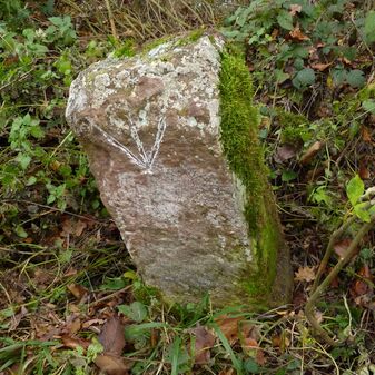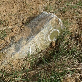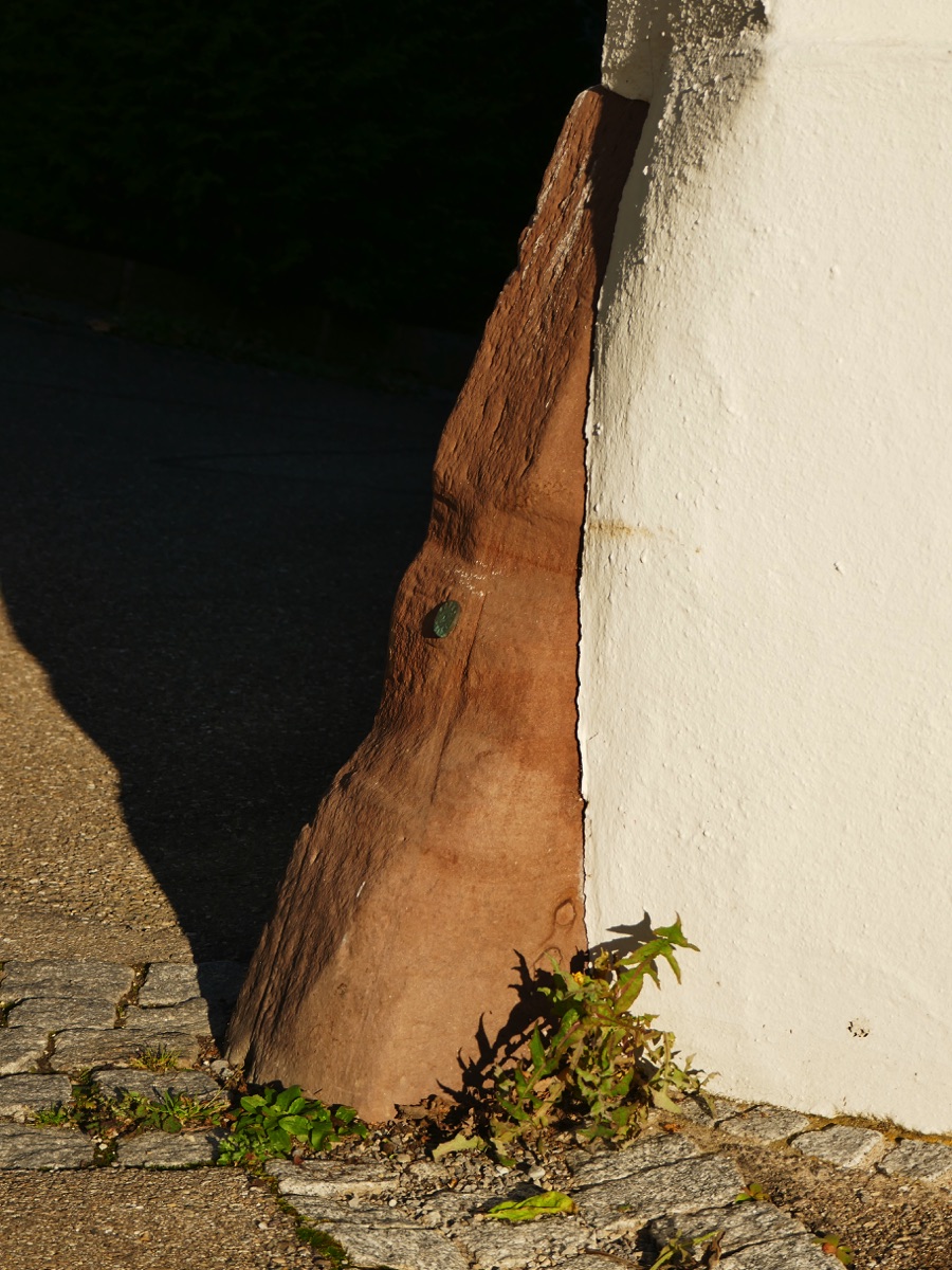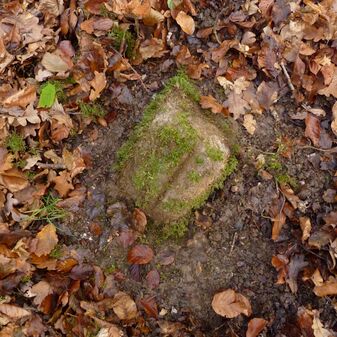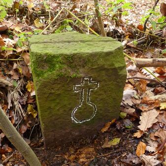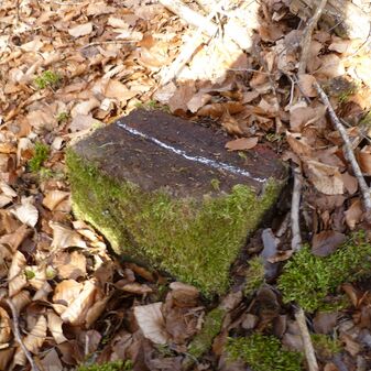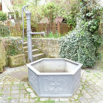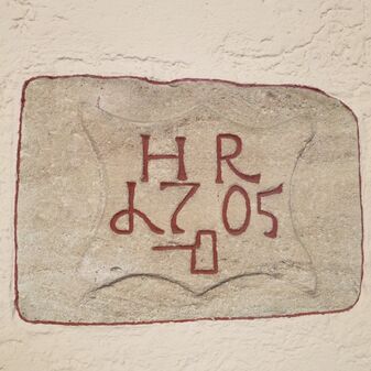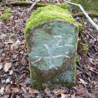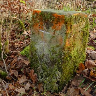Gefallenendenkmal, bestehend aus einem Steinkreuz mit Inschrift und einer u-förmigen Mauer mit zwölf Platten, auf denen die Lebensdaten der Verstorbenen aufgelistet sind. Drei Stufen führen hinauf und hinter dem Kreuz befindet sich eine Inschrifttafel aus Gusseisen mit halbrundem Abschluss und Relief. Die Inschriften auf den Platten an der Mauer gedenken den Verstorbenen des Ersten und Zweiten Weltkriegs, die Inschrift auf der gusseisernen Platte gedenkt den Gefallenen des Krieges von 1870/71. Gut erhalten, ca. 4m hoch, 6m breit und 3m tief.