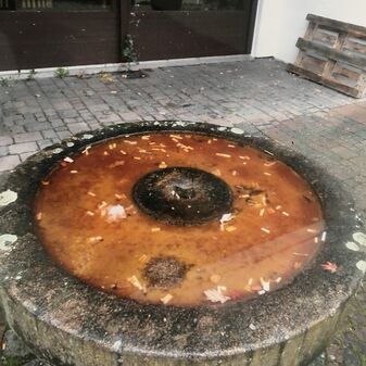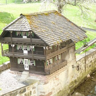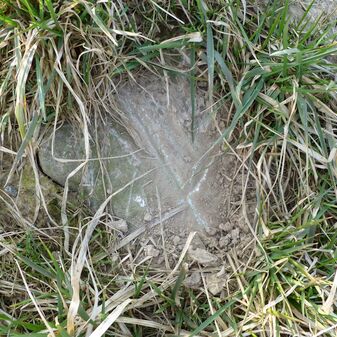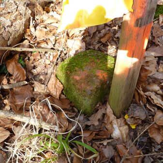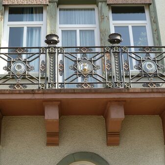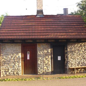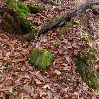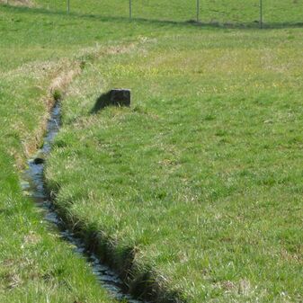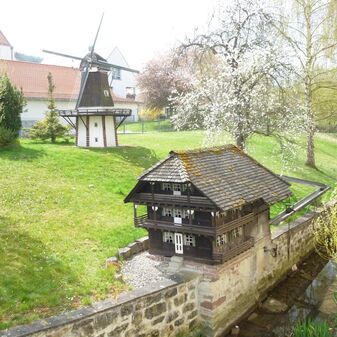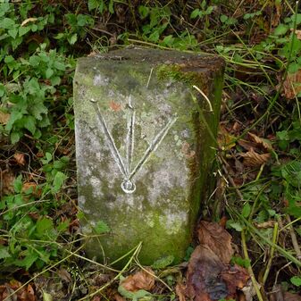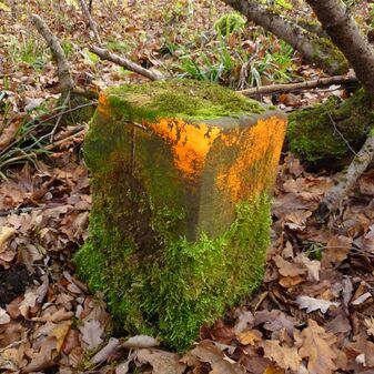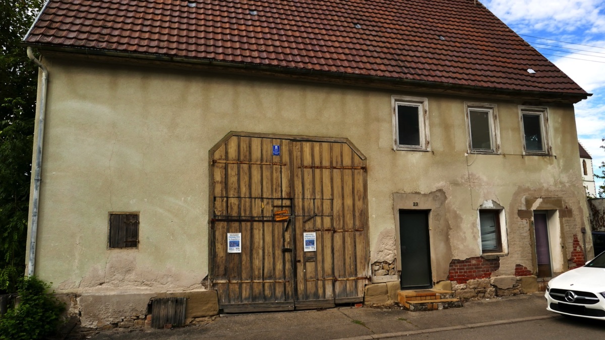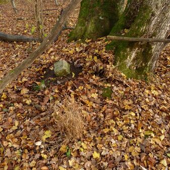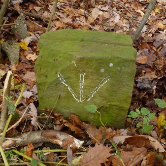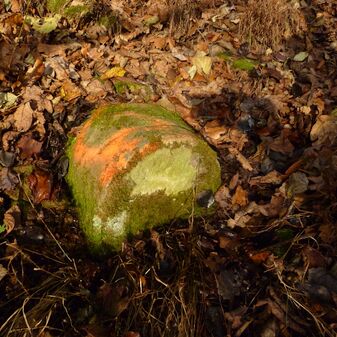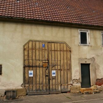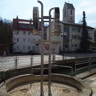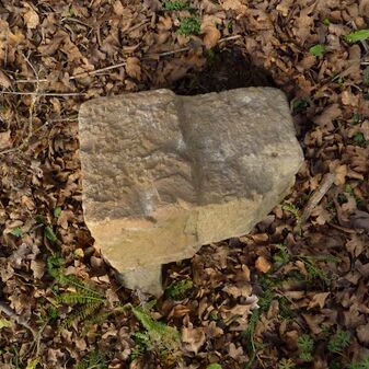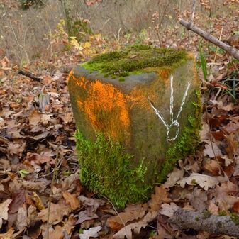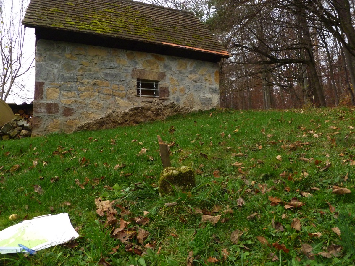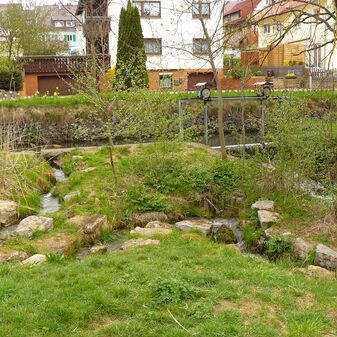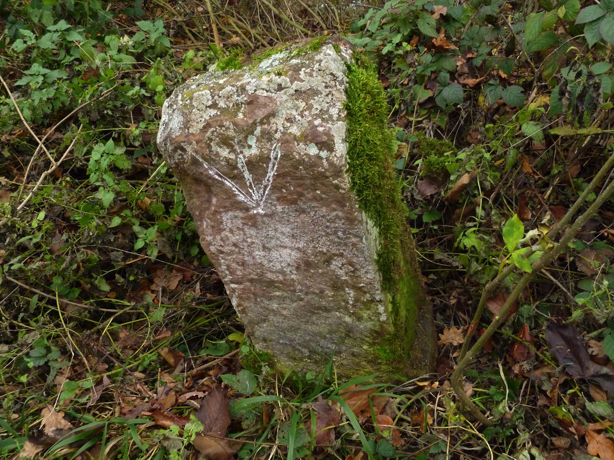 Gefallenendenkmal, bestehend aus einem Steinkreuz mit Inschrift und einer u-förmigen Mauer mit zwölf Platten, auf denen die Lebensdaten der Verstorbenen aufgelistet sind. Drei Stufen führen hinauf und hinter dem Kreuz befindet sich eine Inschrifttafel aus Gusseisen mit halbrundem Abschluss und Relief. Die Inschriften auf den Platten an der Mauer gedenken den Verstorbenen des Ersten und Zweiten Weltkriegs, die Inschrift auf der gusseisernen Platte gedenkt den Gefallenen des Krieges von 1870/71. Gut erhalten, ca. 4m hoch, 6m breit und 3m tief.