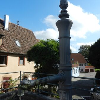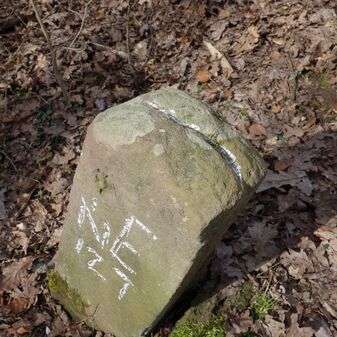 Der Gemarkungsgrenzstein markiert die Grenze zwischen Öschelbronn und Unterjettingen. Der Grenzstein weist geringe Schäden auf und besteht aus Sandstein mit rechteckiger Grundform und gewölbtem Kopf. Er ist 50cm hoch, 18cm breit und 14cm tief. Außerdem ist der Stein mit einer geraden Krinne sowie der Nummerierung NE 127 und einem Kreis gekennzeichnet.