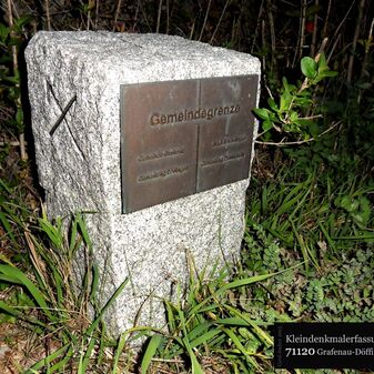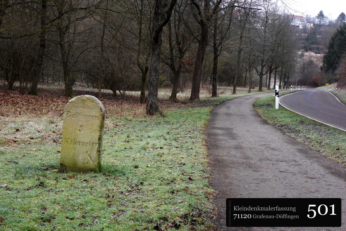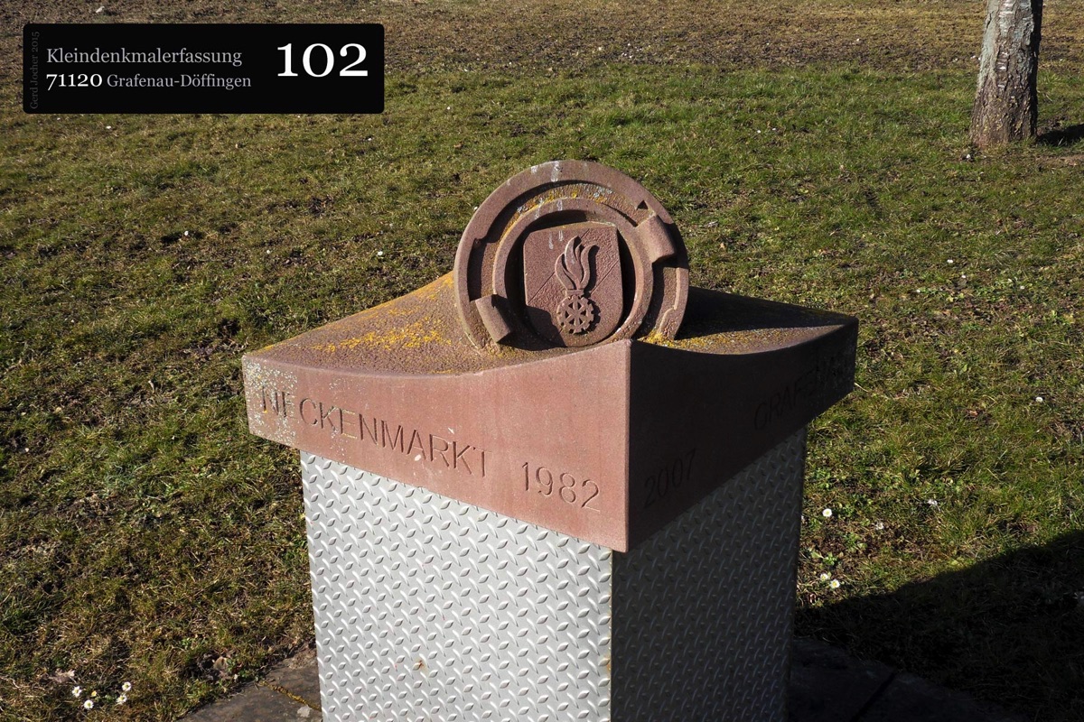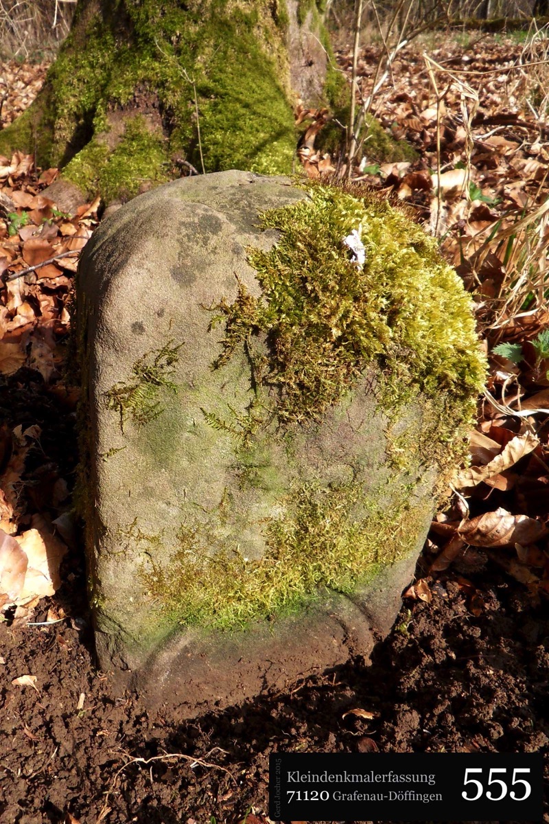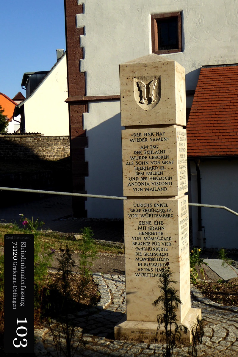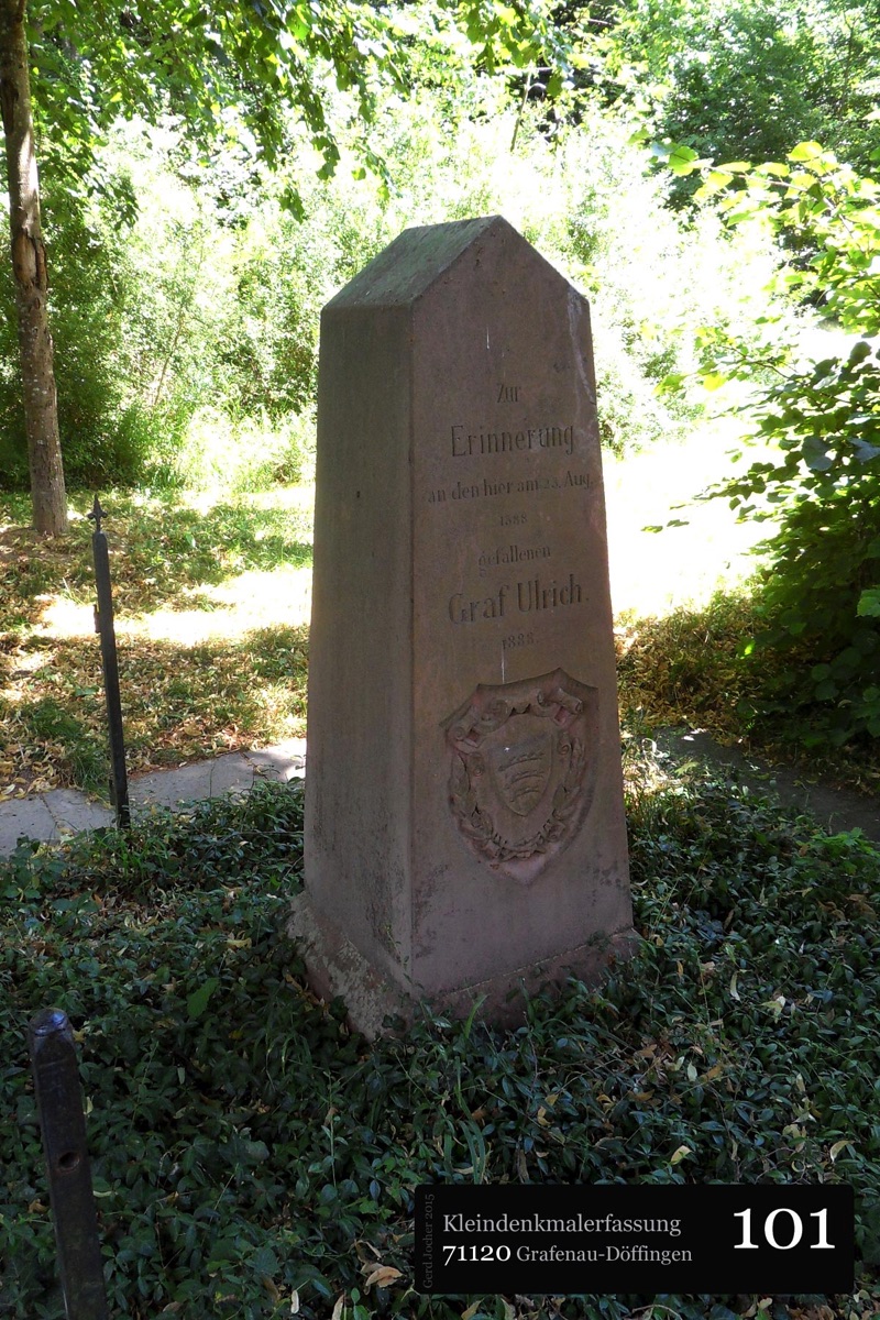 Dieser Gedenkstein von 1888 erinnert an Graf Ulrich von Württemberg, der in der Schlacht bei Döffingen 1388 starb. Angefertigt wurde der Gedenkstein aus quadratischem Sandstein von Bildhauer Christian Schlauch aus Münklingen. Der Stein ist sowohl mit einer Inschrift als auch mit dem Wappen Württembergs versehen und ist 175cm hoch und 74cm breit wie tief. Die Renovierungsarbeiten wurden im Jahr 2005 von der Firma Wanner aus Grafenau geleistet.