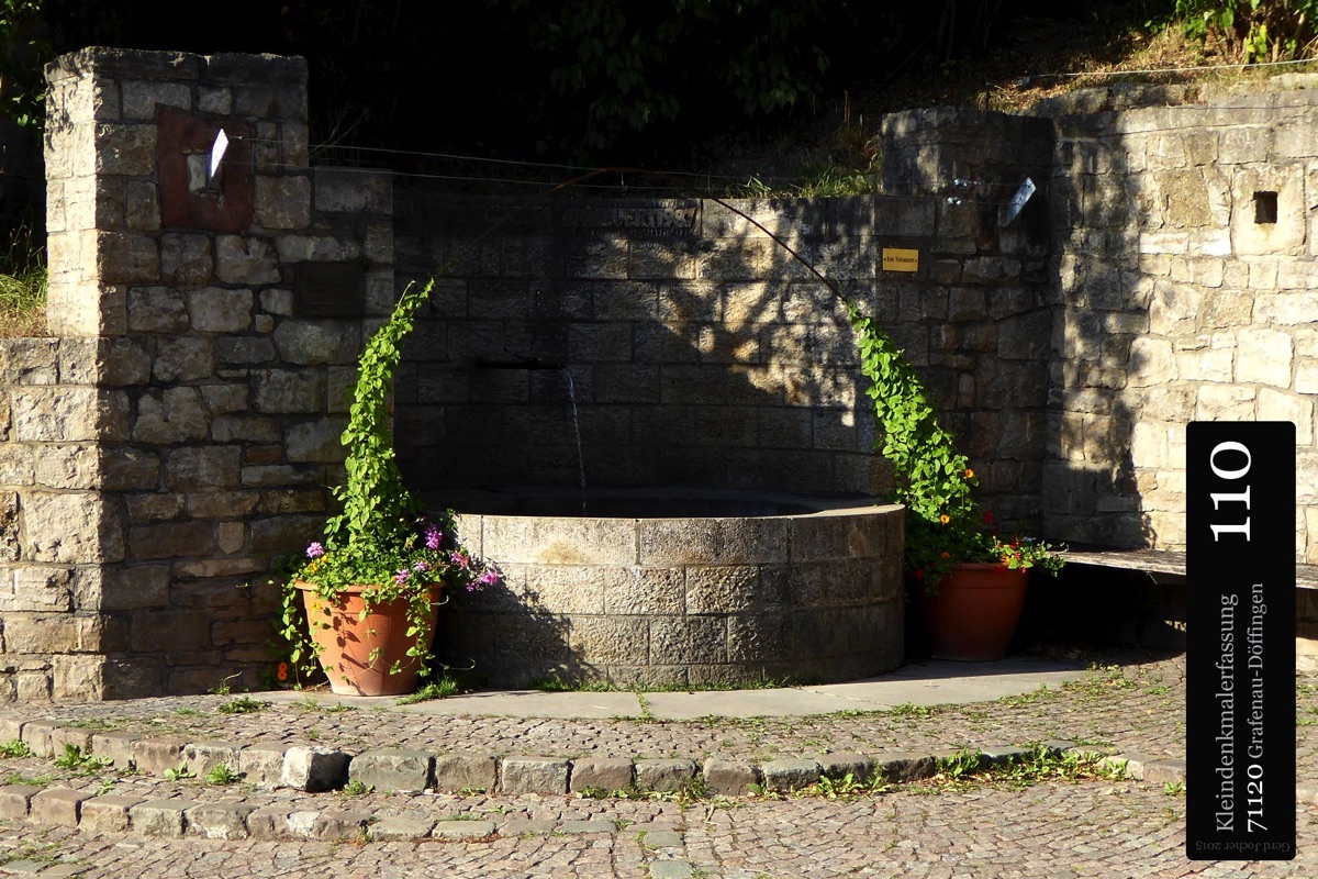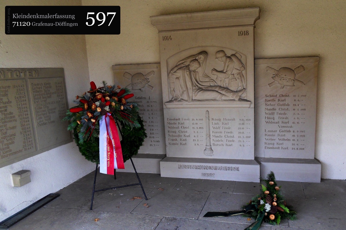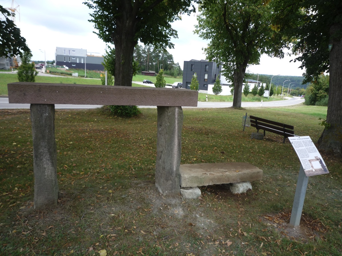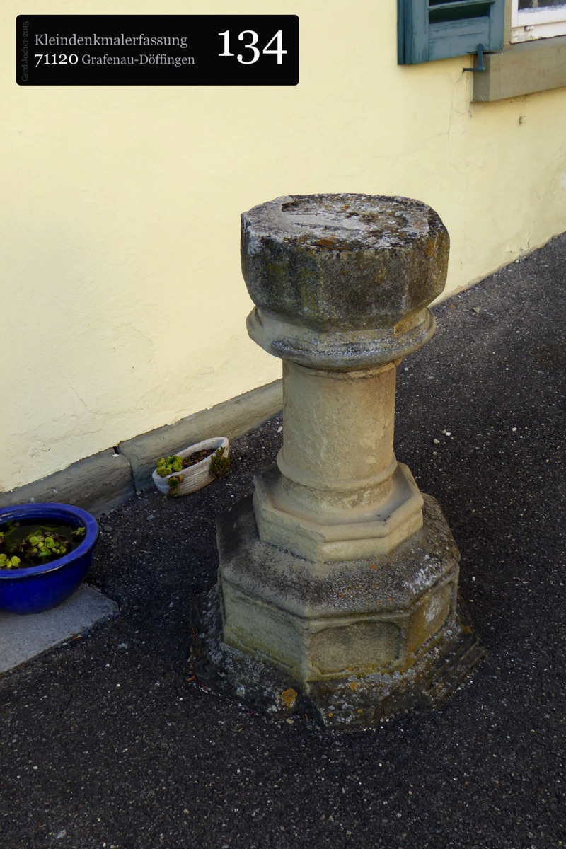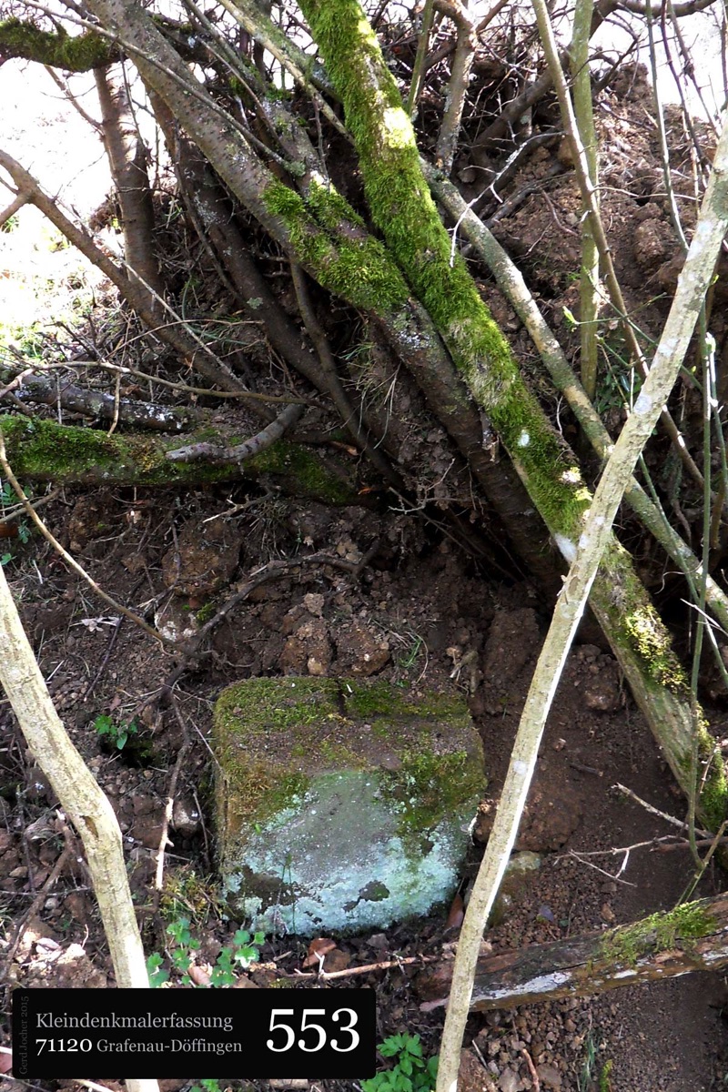 Dieser Gedenkstein von 1888 erinnert an Graf Ulrich von Württemberg, der in der Schlacht bei Döffingen 1388 starb. Angefertigt wurde der Gedenkstein aus quadratischem Sandstein von Bildhauer Christian Schlauch aus Münklingen. Der Stein ist sowohl mit einer Inschrift als auch mit dem Wappen Württembergs versehen und ist 175cm hoch und 74cm breit wie tief. Die Renovierungsarbeiten wurden im Jahr 2005 von der Firma Wanner aus Grafenau geleistet.