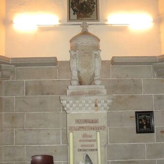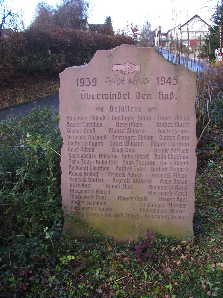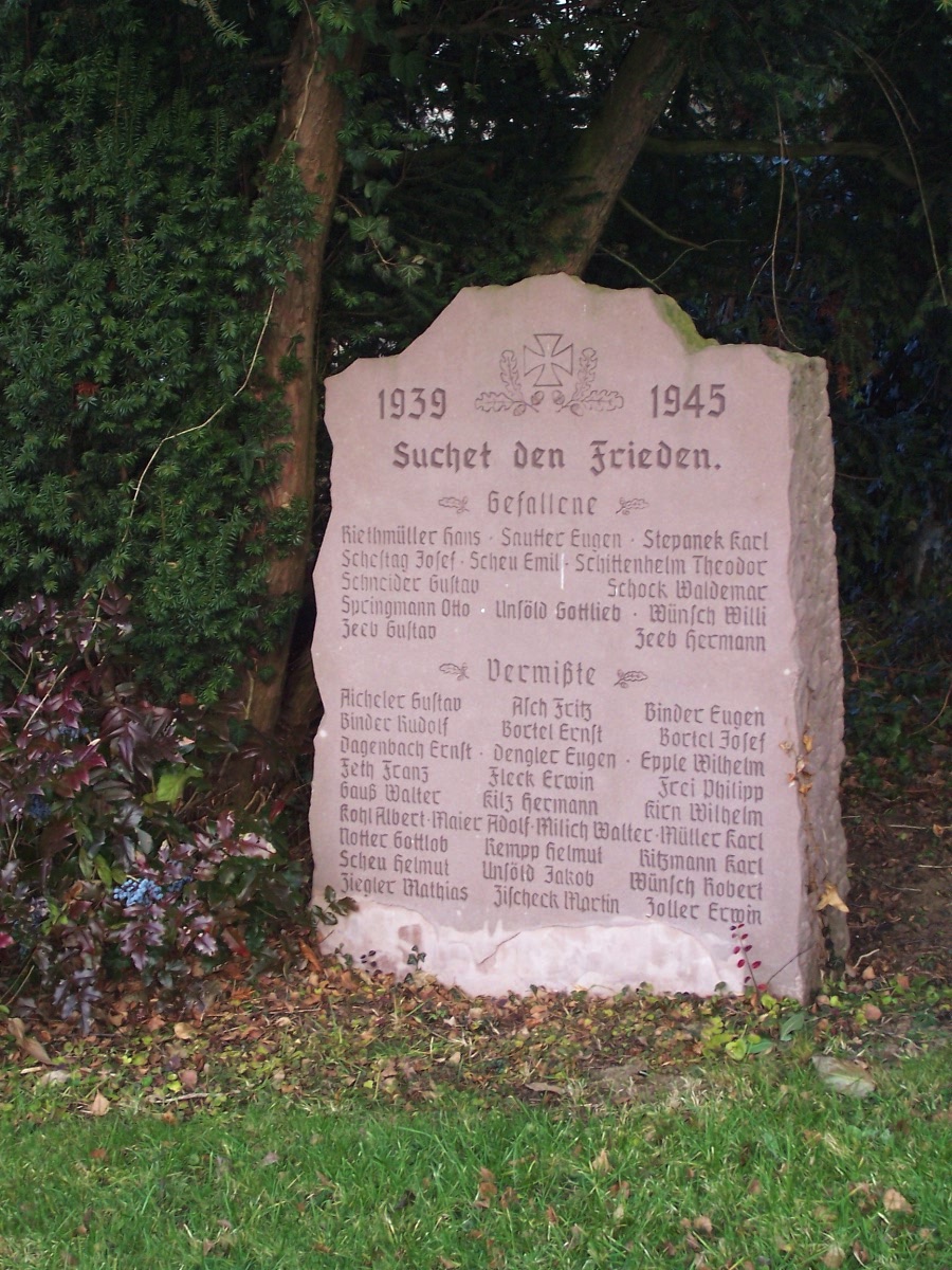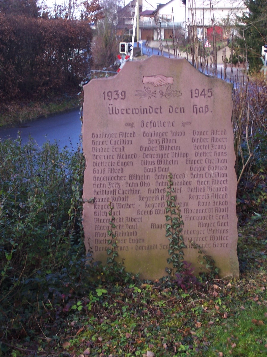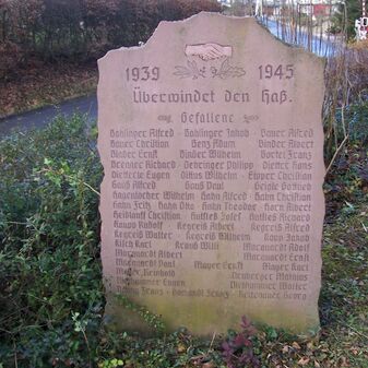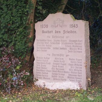 Wachet, stehet im Glauben, / seid männlich und seid stark / Korinther 16:13 /… // 1939 1945 / Suchet den Frieden. / … // 1939 1945 / Überwindet den Haß /…