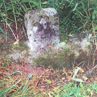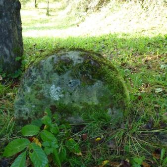 Grenzstein der Gemarkung Unterjettingen und Haslach (zugleich Gemeindegrenze Herrenberg und Jettingen), mit Inschrift, z.T. unlesbar. Rechteckige Grundform, gewölbter Kopf, befriedigend erhalten, Sandstein, 50cm hoch, 57cm breit, 30cm tief.