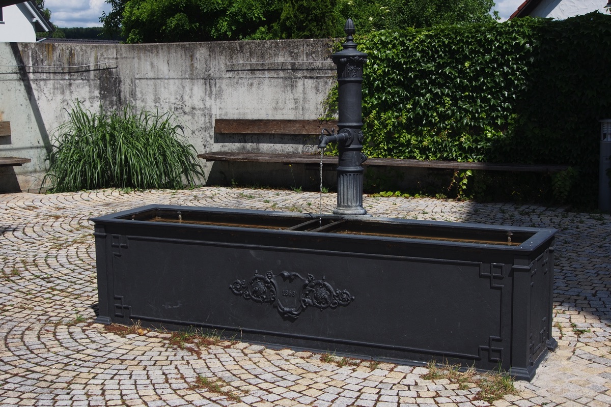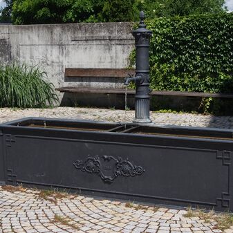 Brunnen von 1868, bestehend aus Brunnenstock, Wasserlauf und rechteckigem Brunnentrog mit Wappen, Datierung und Verzierungen im Renaissancestil, keine weiteren näheren Angaben.