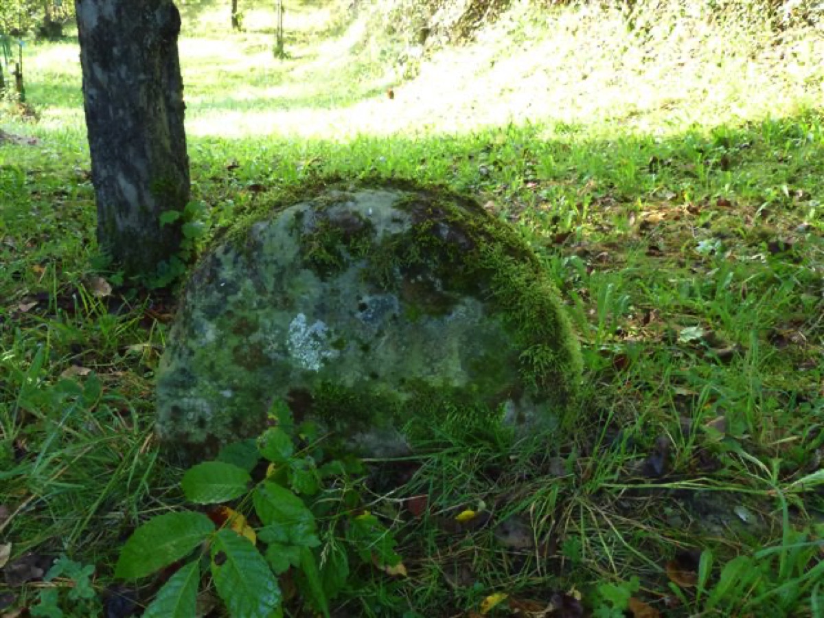 Grenzstein der Gemarkung Herrenberg und Haslach, ohne Beschriftung. Rechteckige Grundform, gewölbter Kopf, befriedigend erhalten, Sandstein, 50cm hoch, 57cm breit, 30cm tief.
