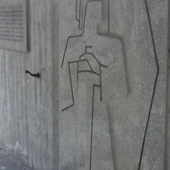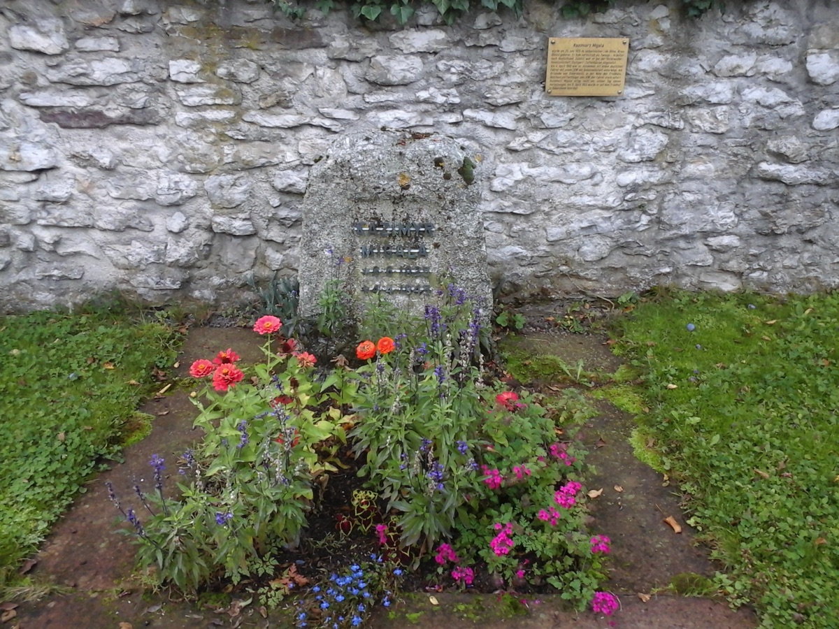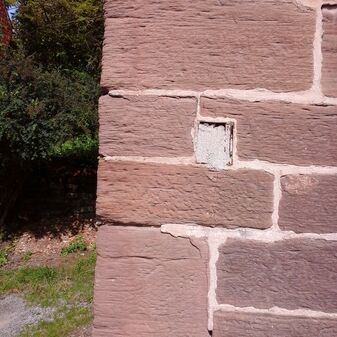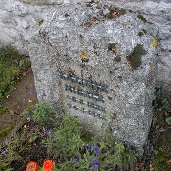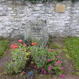 Gedenkstein für Albrecht und Elisabeth Goes (Dichter, Pfarrer und Frau), von 2003, Sandsteinblock mit Inschrift auf Sockel. Sehr gut erhalten, 75cm hoch und breit und 20cm tief. Auf Initiative von Gerhard Raff (Historiker) aus Stuttgart, geschenkt von Richard von Weizäcker (Bundespräsident a.D.), gefertigt von Markus Wolf (Bildhauer).