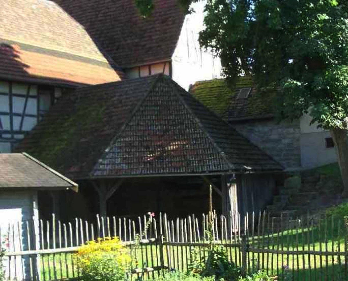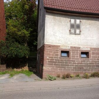 Gemeindebackhaus von 1851, rechteckige Grundform, Tür- und Fensterlaibungen aus Sandstein, Fassade verputzt, Satteldach mit Ziegeln, zwei Schornsteine für zwei Öfen und eine Obstdarre, funktionsfähig, Teil des Bauernhausmuseum. Sehr gut erhalten, 1980 saniert, 5m hoch, 6,8m breit und 5,5mtief.