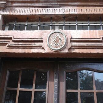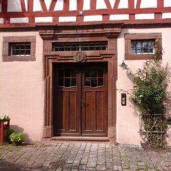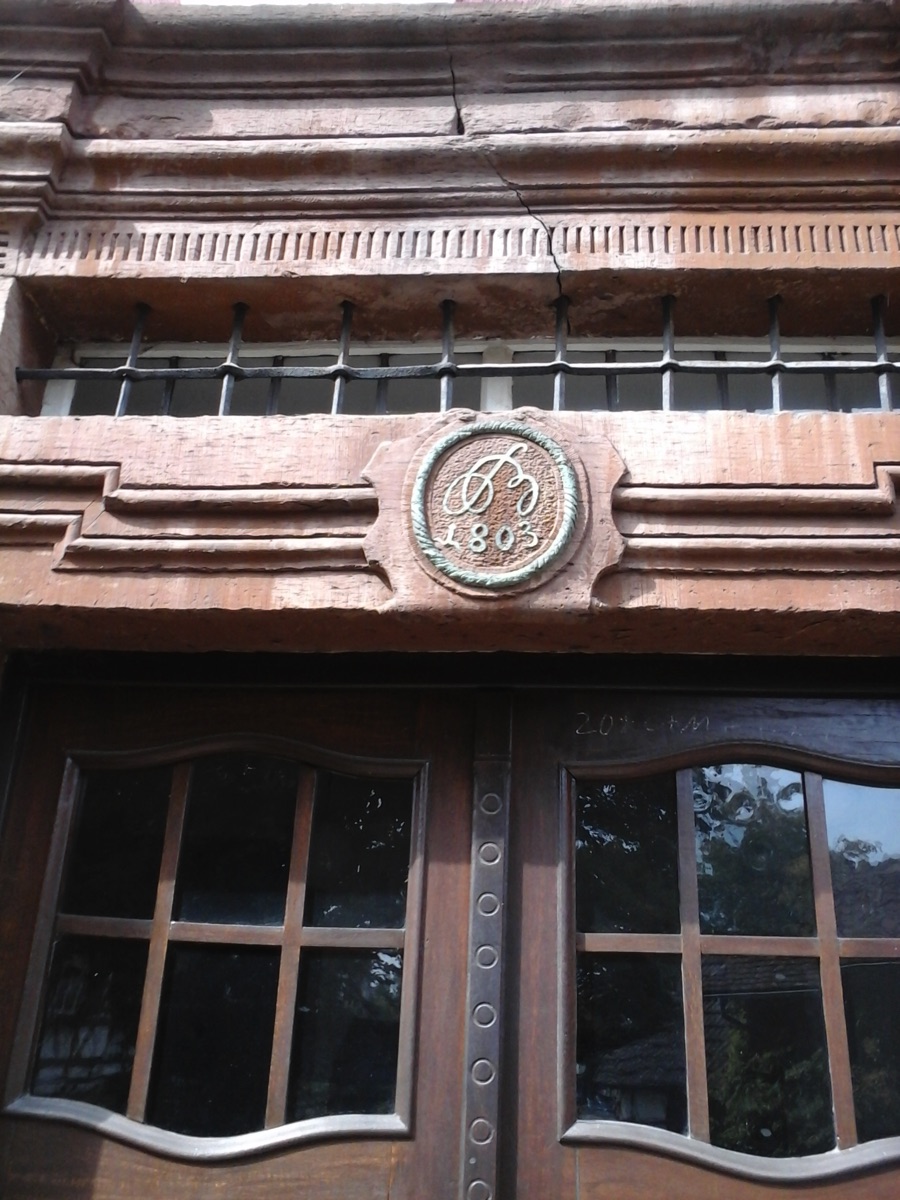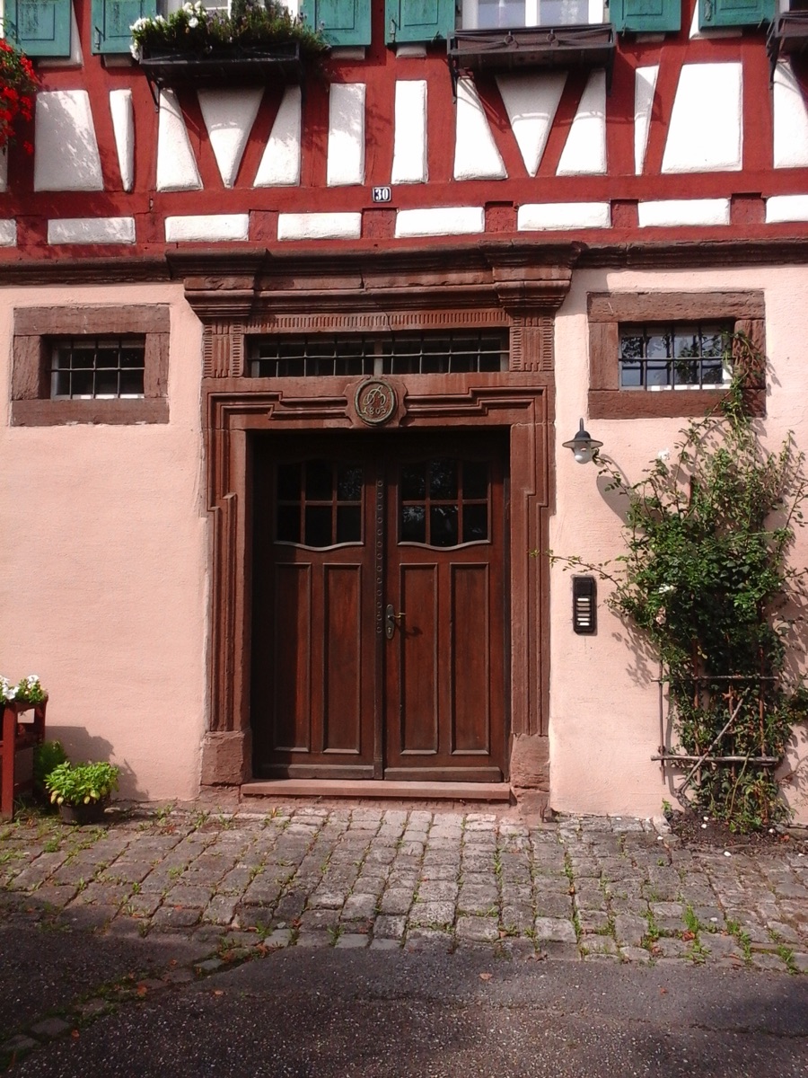 Portal von 1803, des ehem. Bürgermeisterhauses von Hans Bolay, Holz, Stein, mit Inschrift. Sehr gut erhalten, 3m hoch, 2,5m breit.