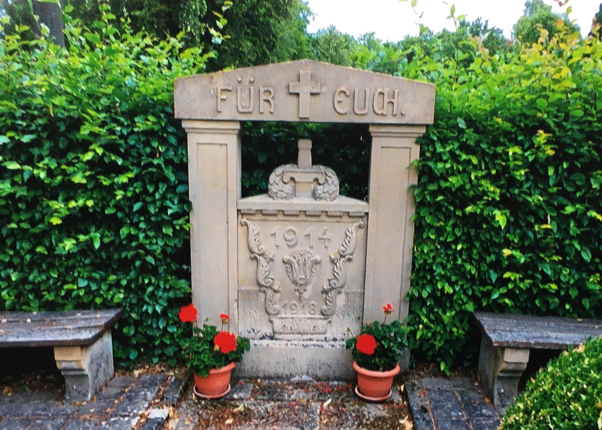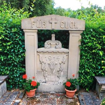 FÜR EUCH. / 1914 / 1918 // GOTTLOB MUNDINGER / 1892 – 1918 // JAKOB STAHL / 1892 – 1918 // KARL KIENLE / 1908 – 1943 // OTTO ECKERT / 1889 – 1919 / CHRISTIAN KOHLER / 1882 – 1912 / CHRISTIAN GENGENBACH / 1884 - 1914