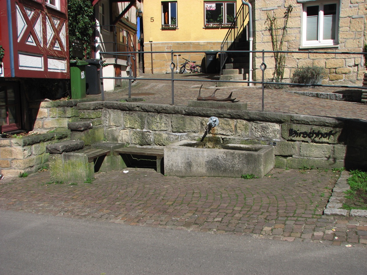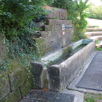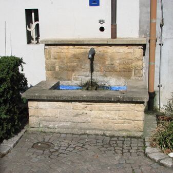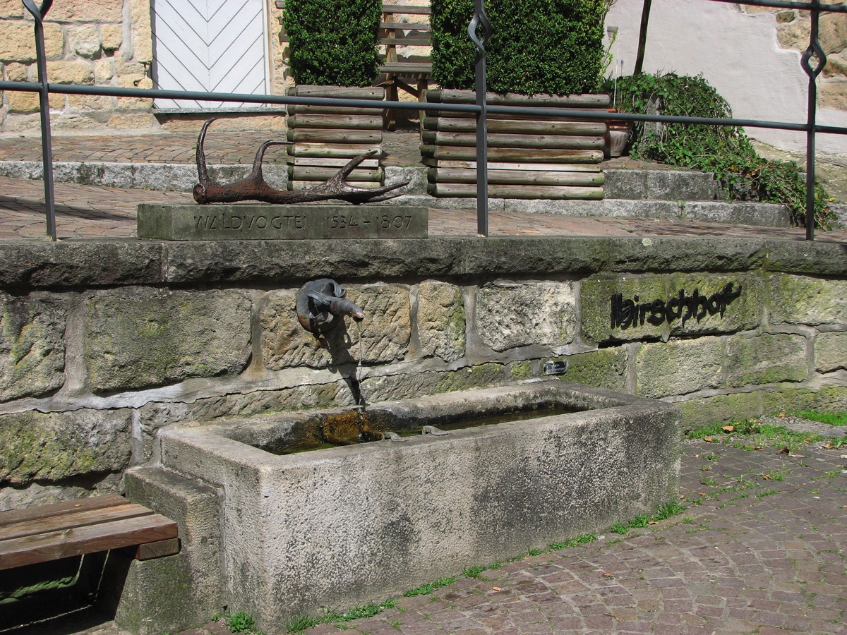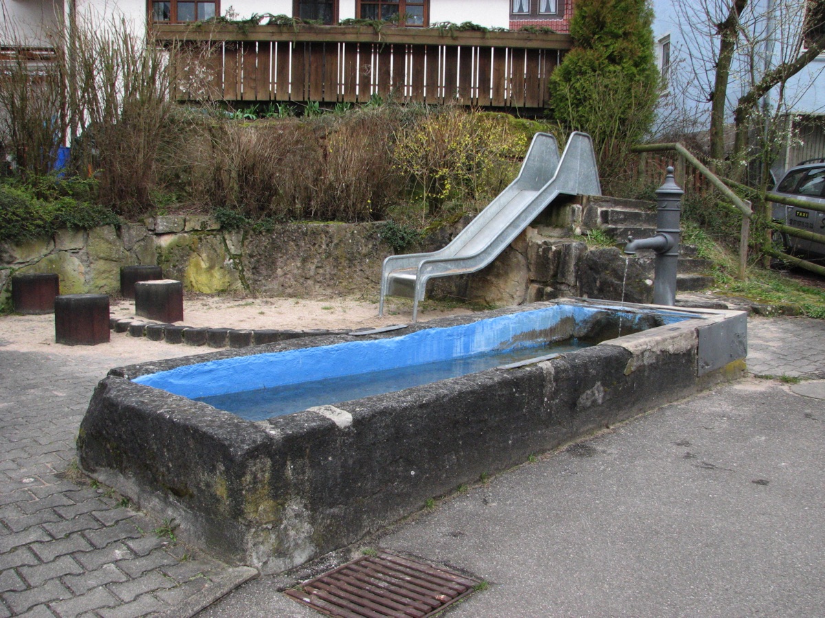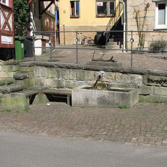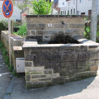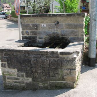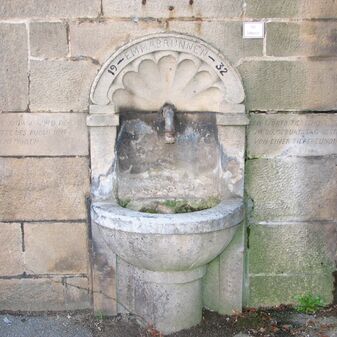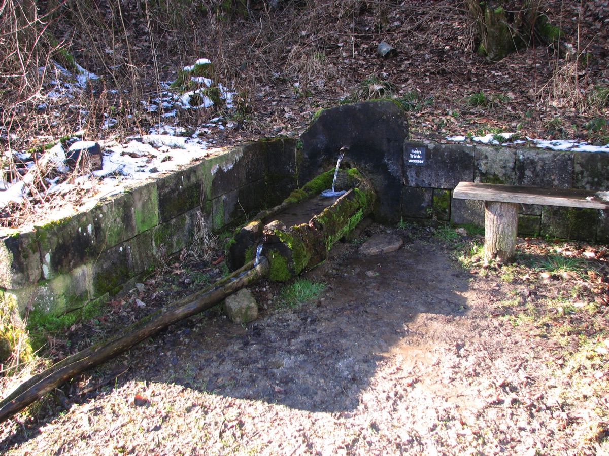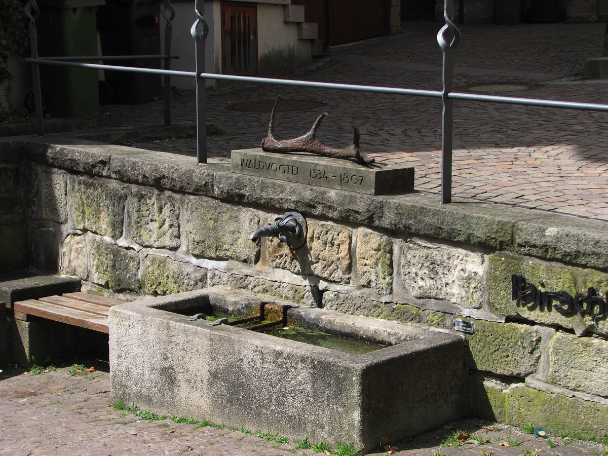 Brunnenstube für „Immenbach- oder Gaiernbrunnen“. Nur noch dreieckiges Oberteil sichtbar, der Schacht ist mit Blech abgedeckt. An der Stirnseite befindet sich ein kreisrundes Relief mit 0,26m Durchmesser. Sandstein, befriedigend erhalten. 0,50m hoch, 1,10m breit, 0,53m tief.