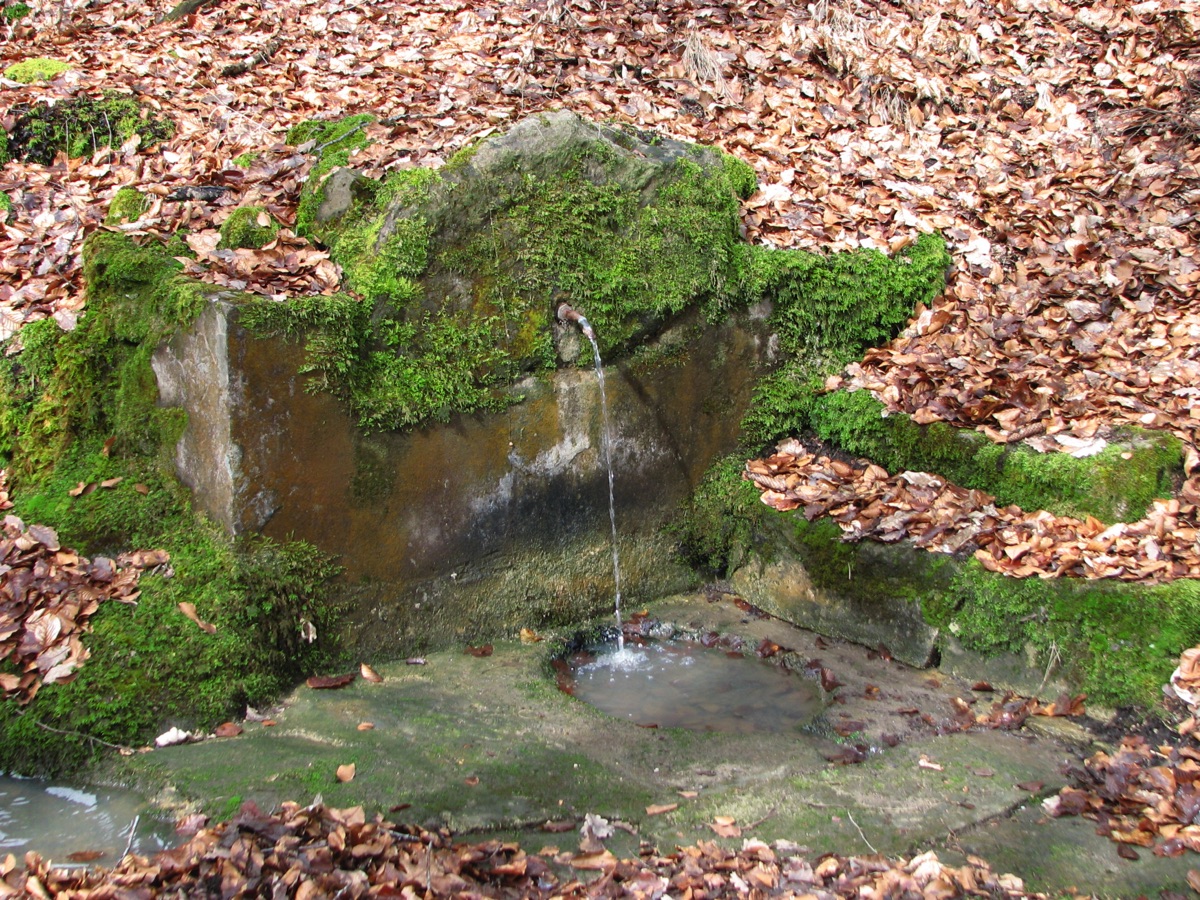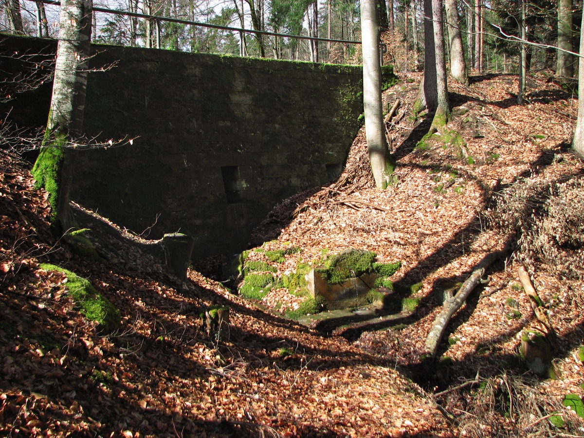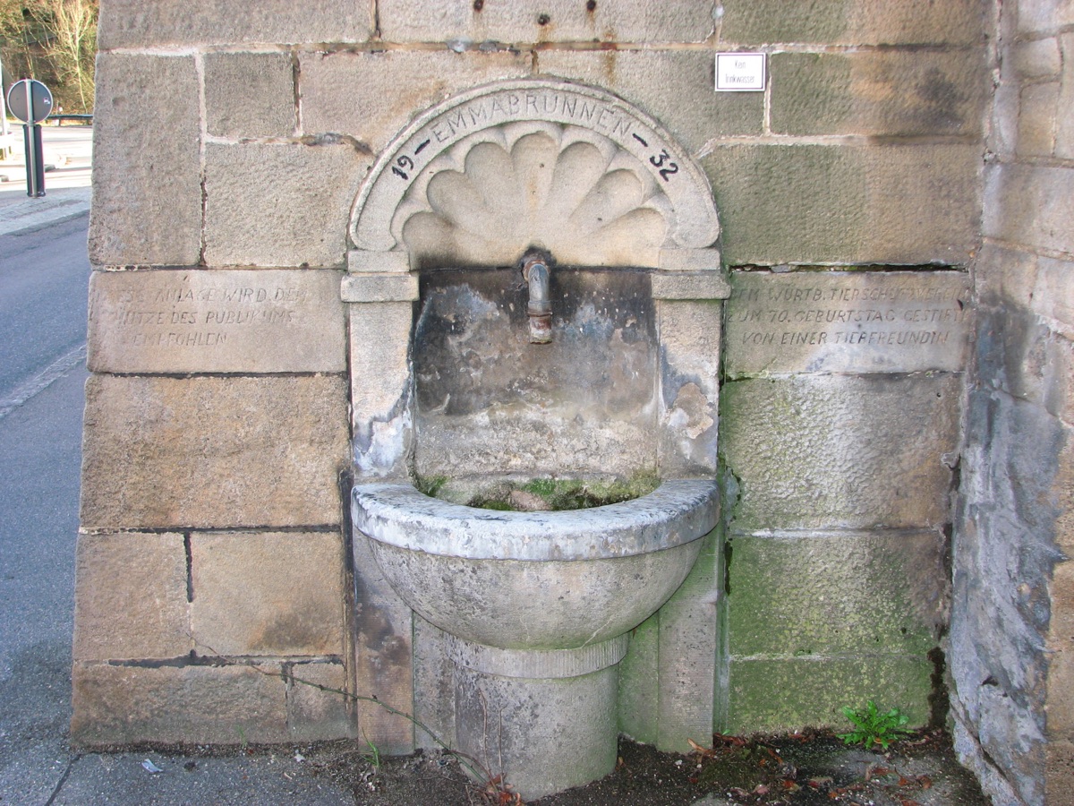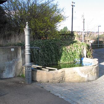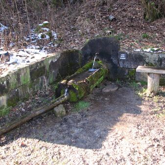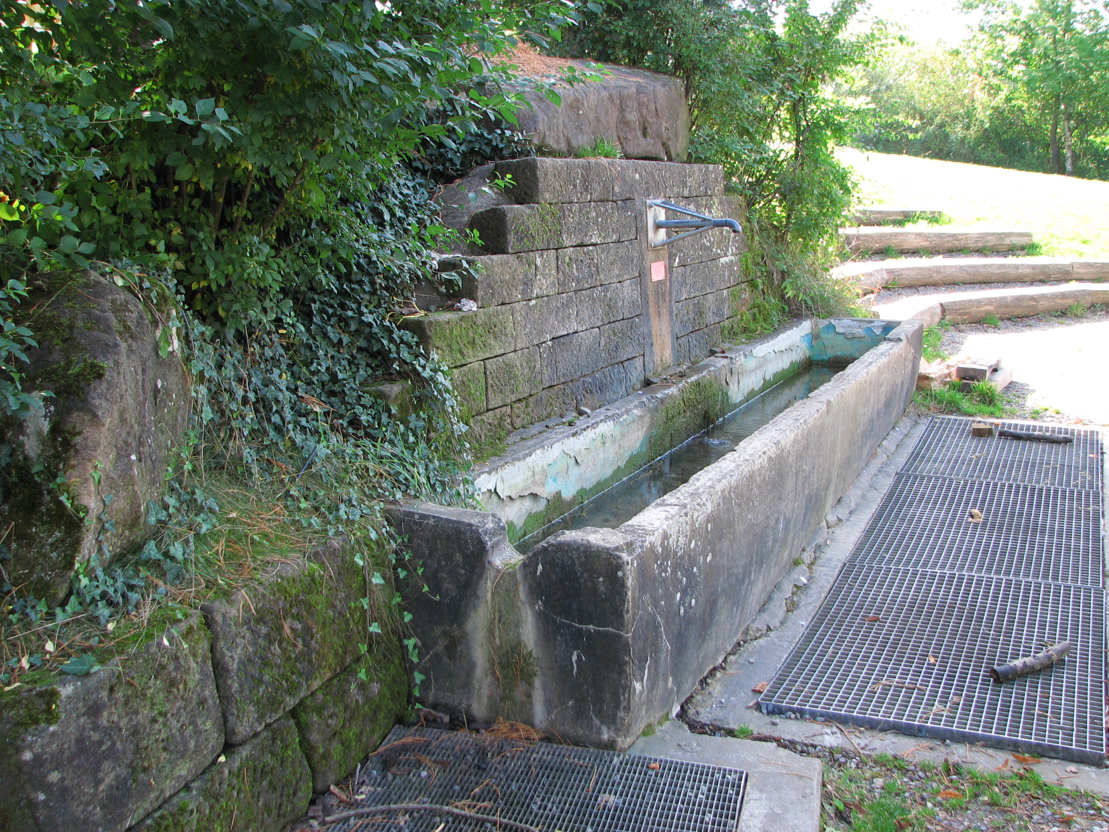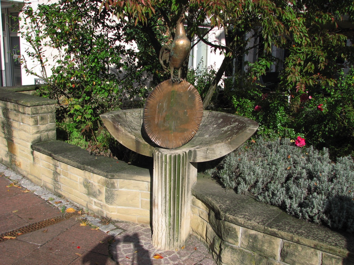 Brunnenstube für „Immenbach- oder Gaiernbrunnen“. Nur noch dreieckiges Oberteil sichtbar, der Schacht ist mit Blech abgedeckt. An der Stirnseite befindet sich ein kreisrundes Relief mit 0,26m Durchmesser. Sandstein, befriedigend erhalten. 0,50m hoch, 1,10m breit, 0,53m tief.