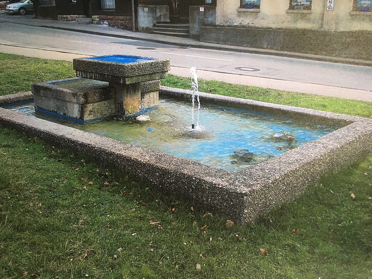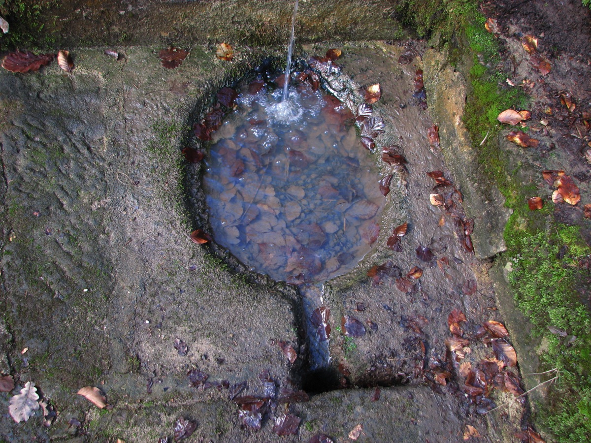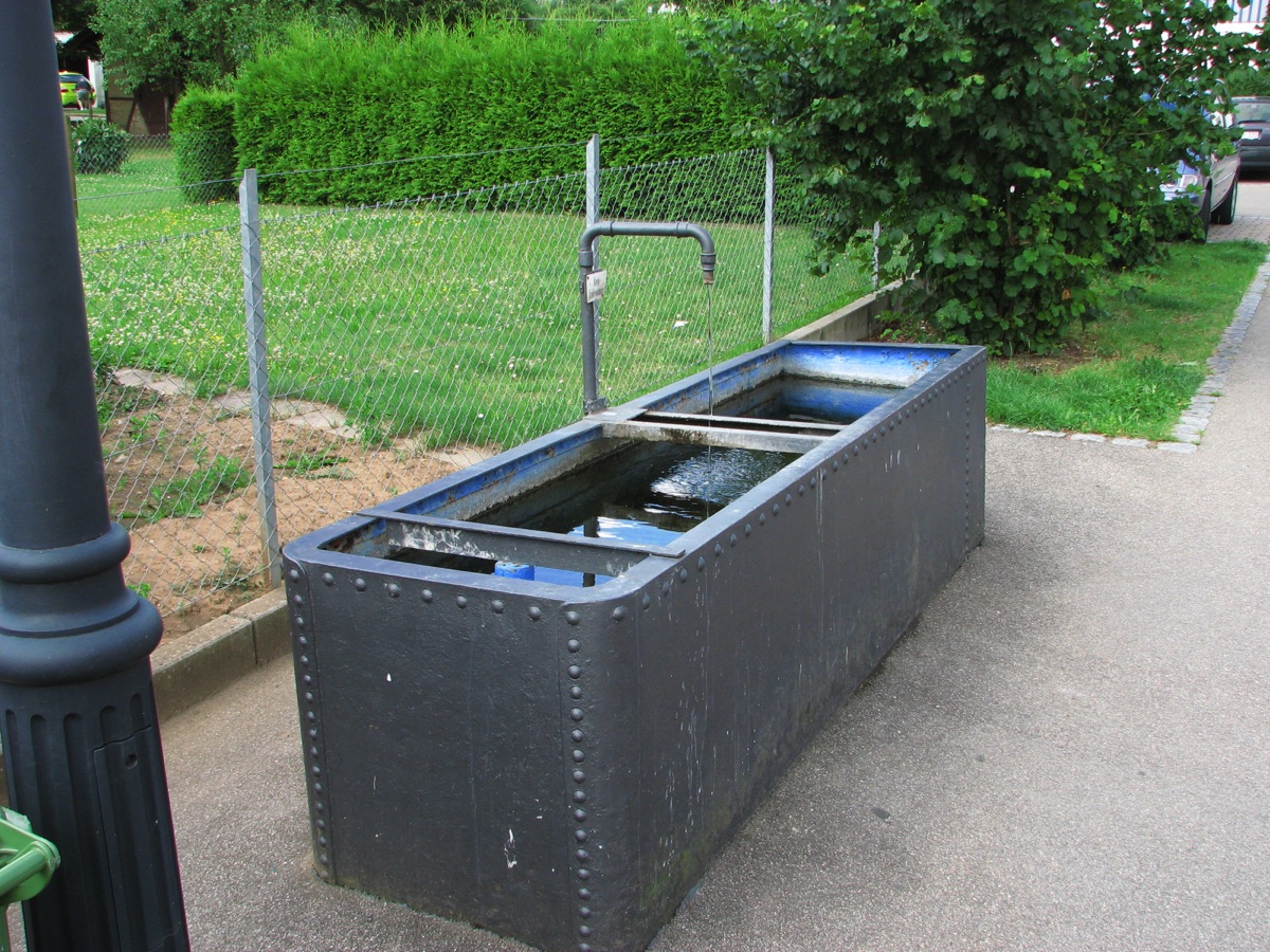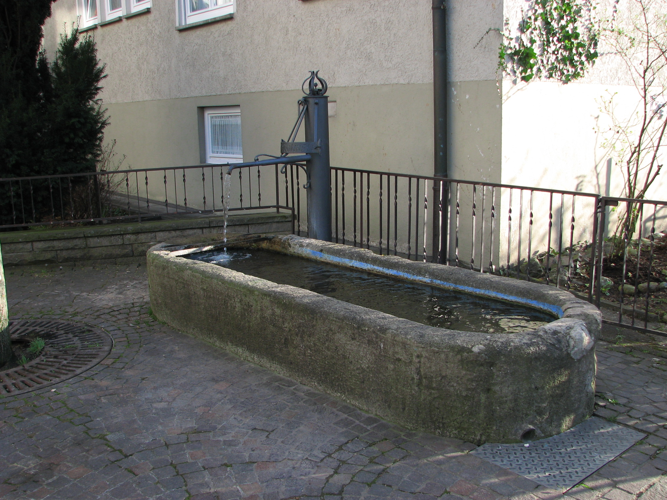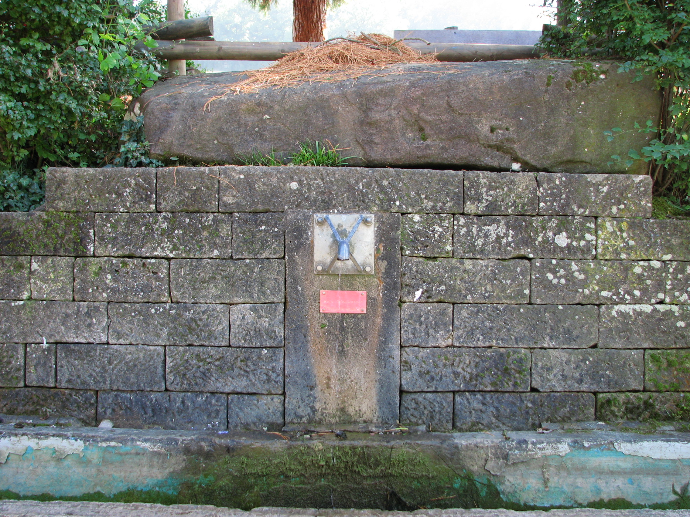 Brunnenstube für „Immenbach- oder Gaiernbrunnen“. Nur noch dreieckiges Oberteil sichtbar, der Schacht ist mit Blech abgedeckt. An der Stirnseite befindet sich ein kreisrundes Relief mit 0,26m Durchmesser. Sandstein, befriedigend erhalten. 0,50m hoch, 1,10m breit, 0,53m tief.