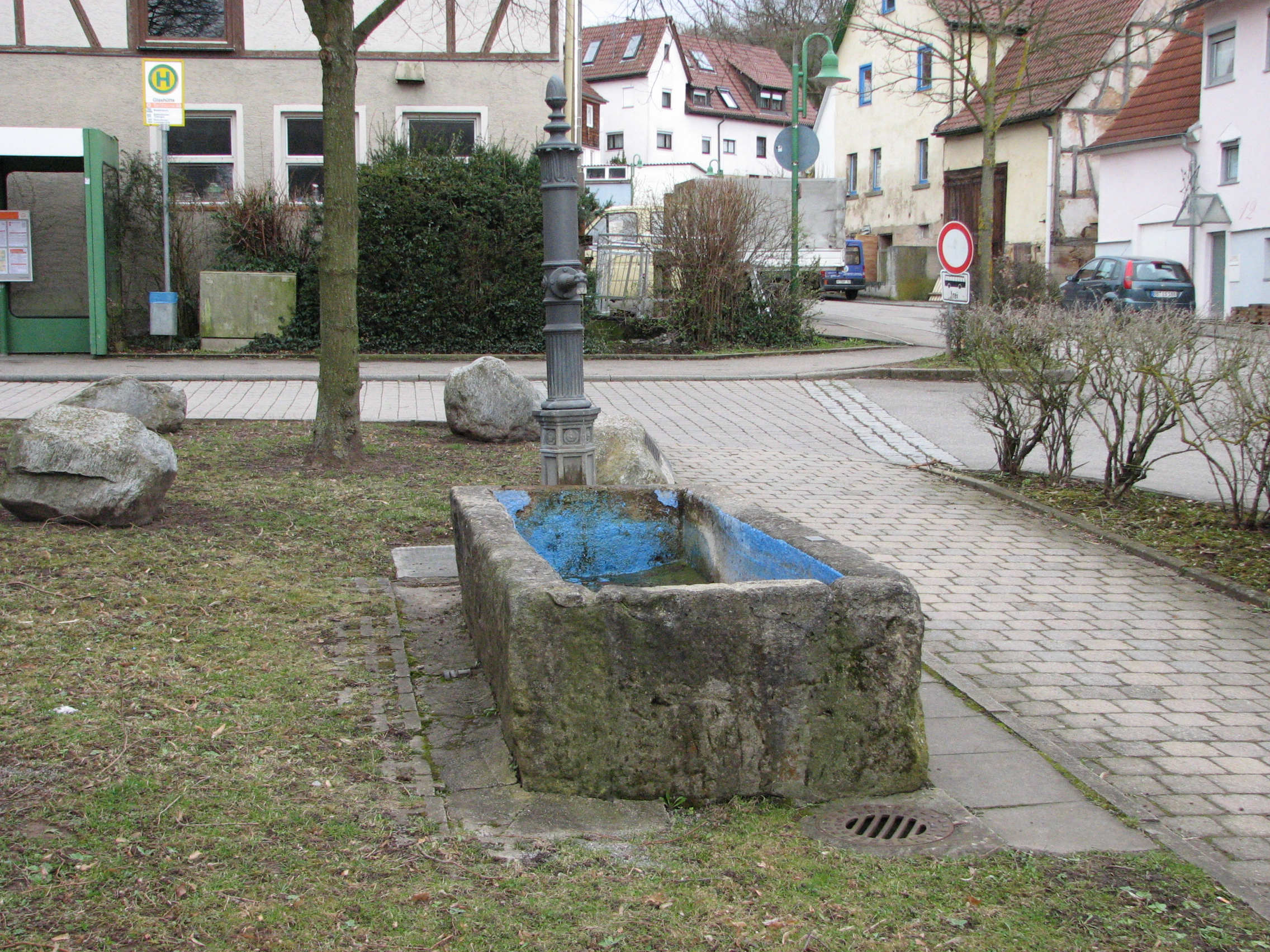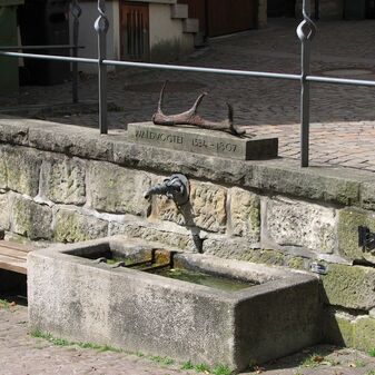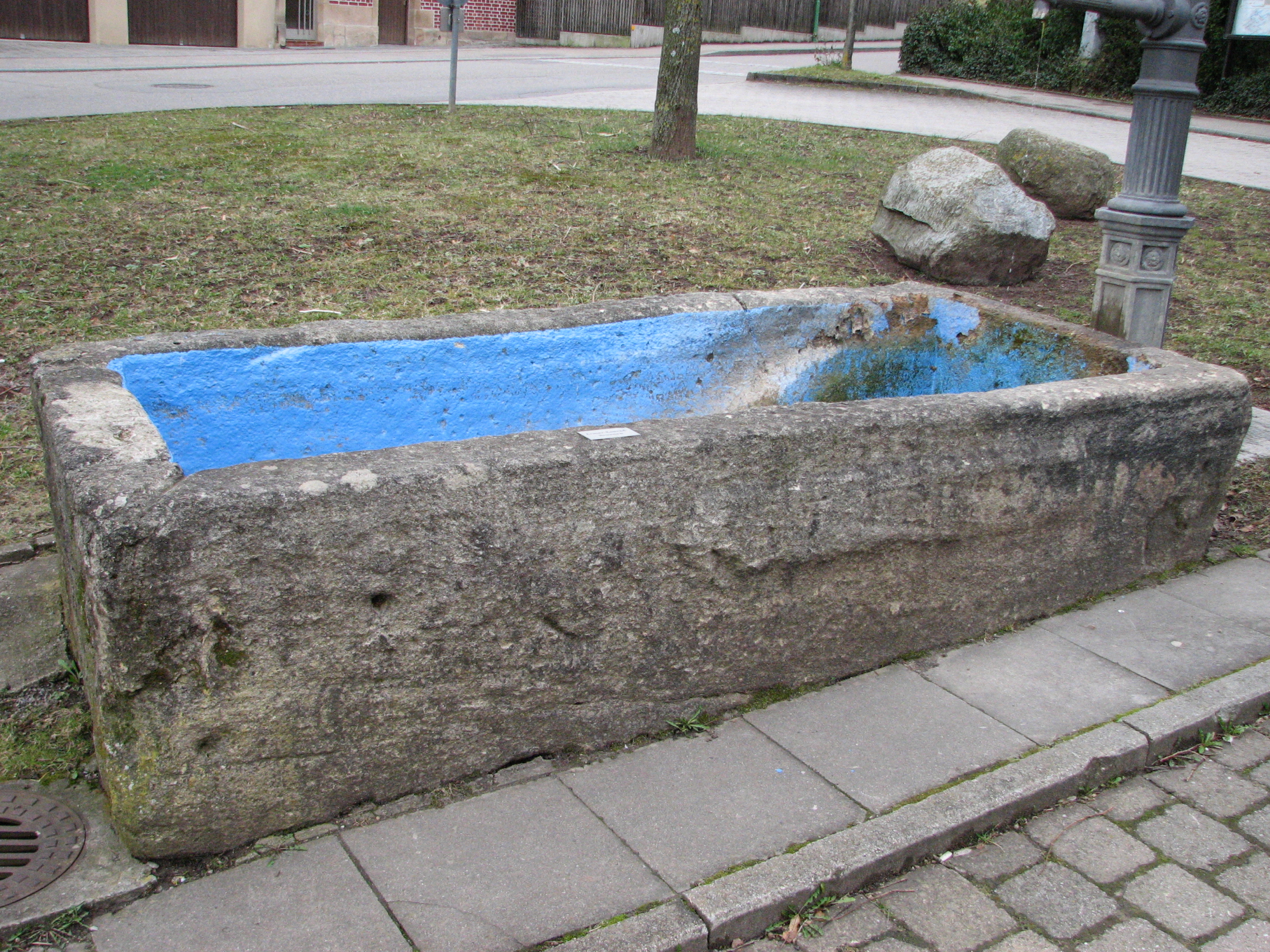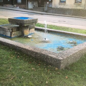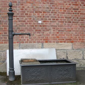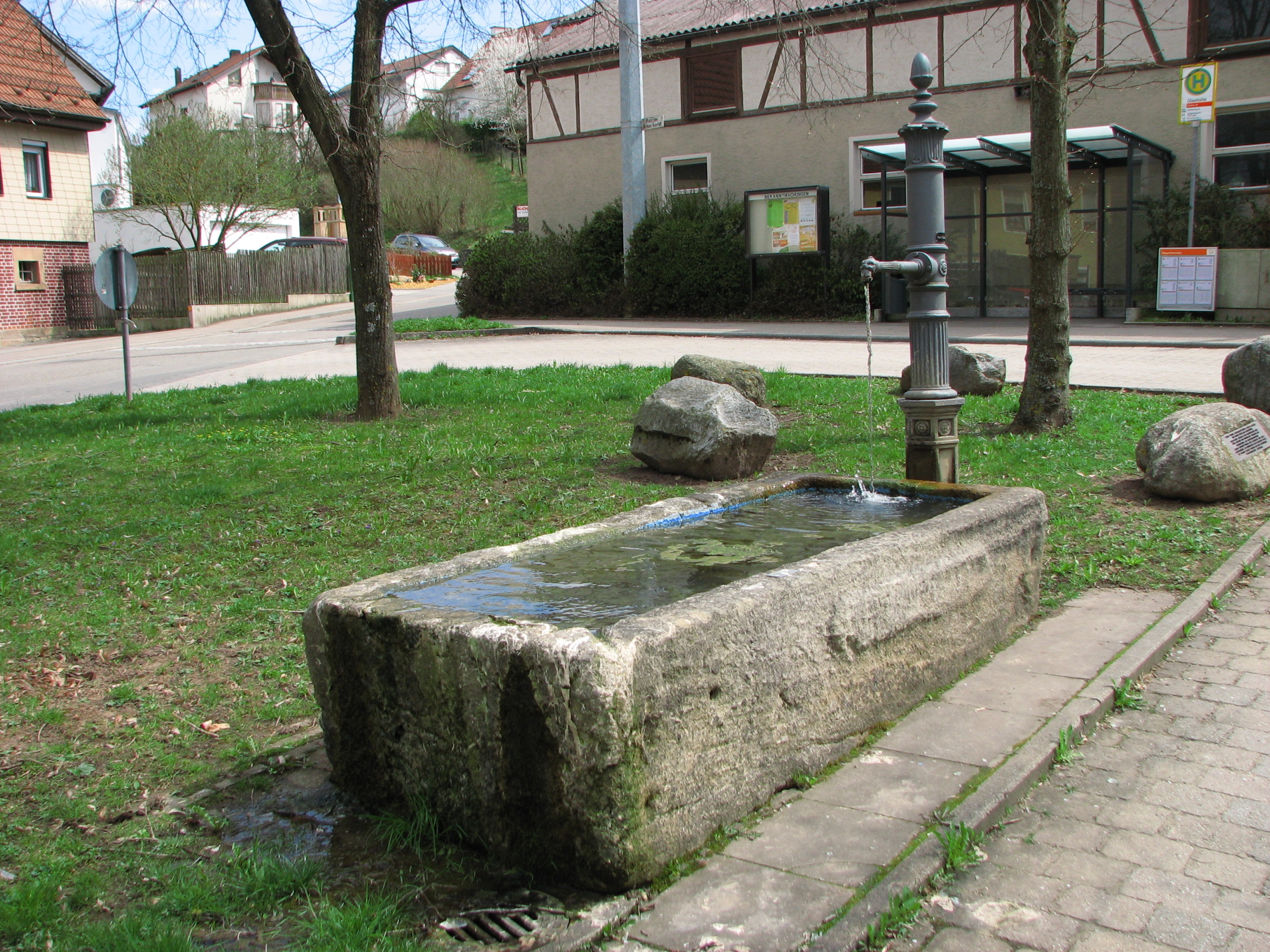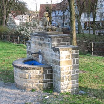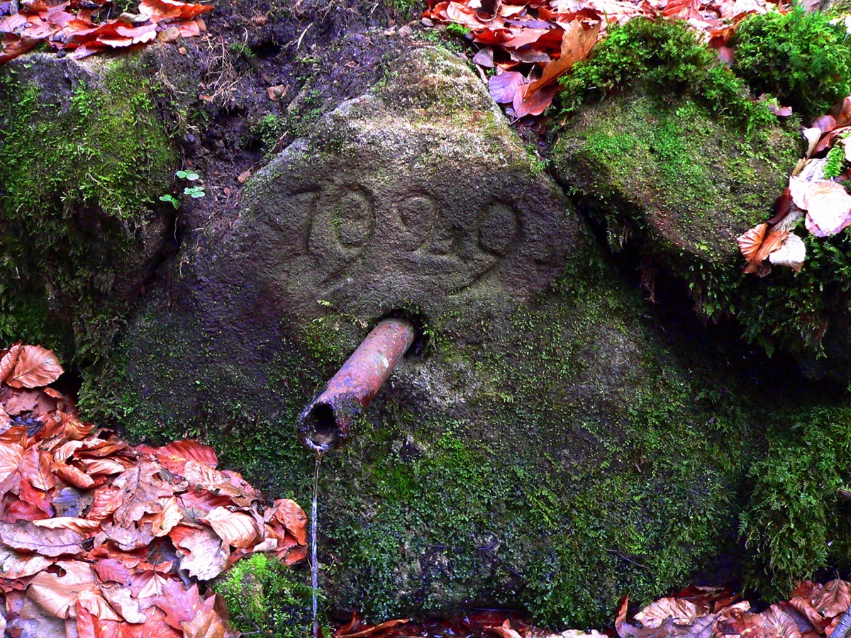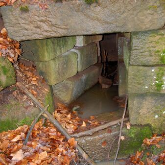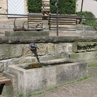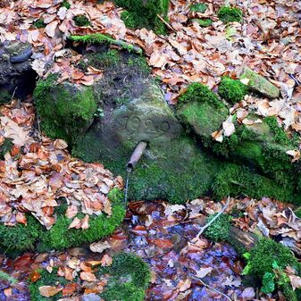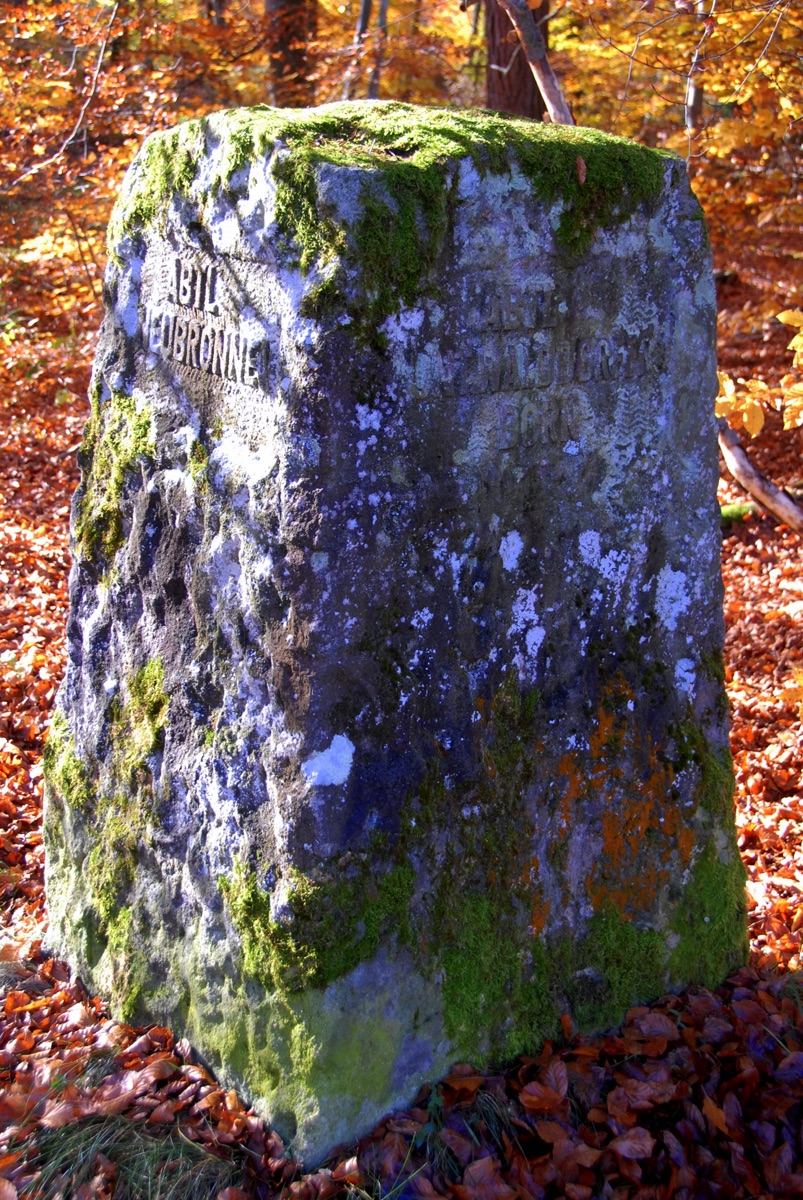 Brunnenstube für „Immenbach- oder Gaiernbrunnen“. Nur noch dreieckiges Oberteil sichtbar, der Schacht ist mit Blech abgedeckt. An der Stirnseite befindet sich ein kreisrundes Relief mit 0,26m Durchmesser. Sandstein, befriedigend erhalten. 0,50m hoch, 1,10m breit, 0,53m tief.