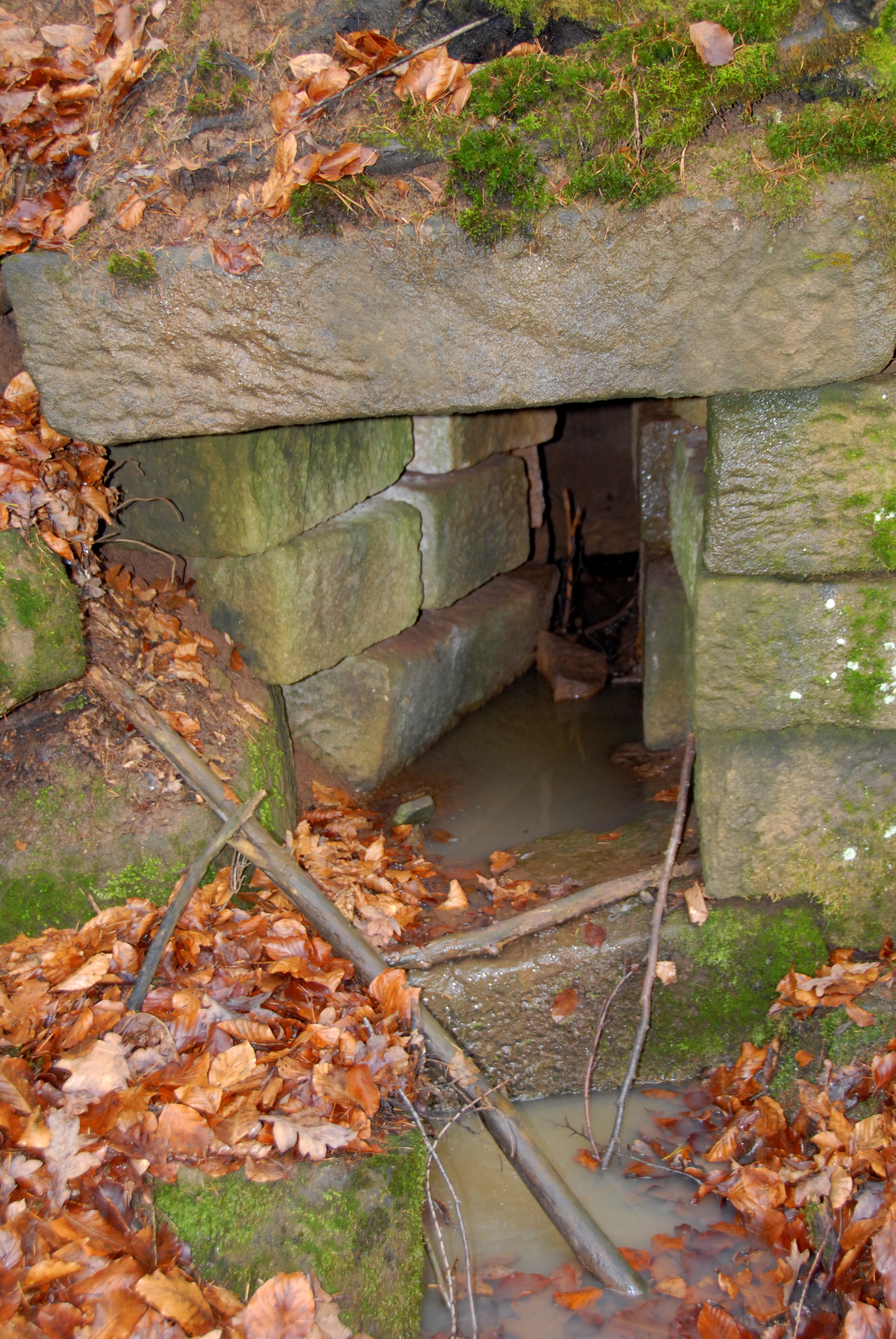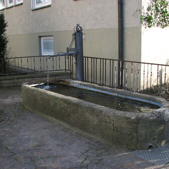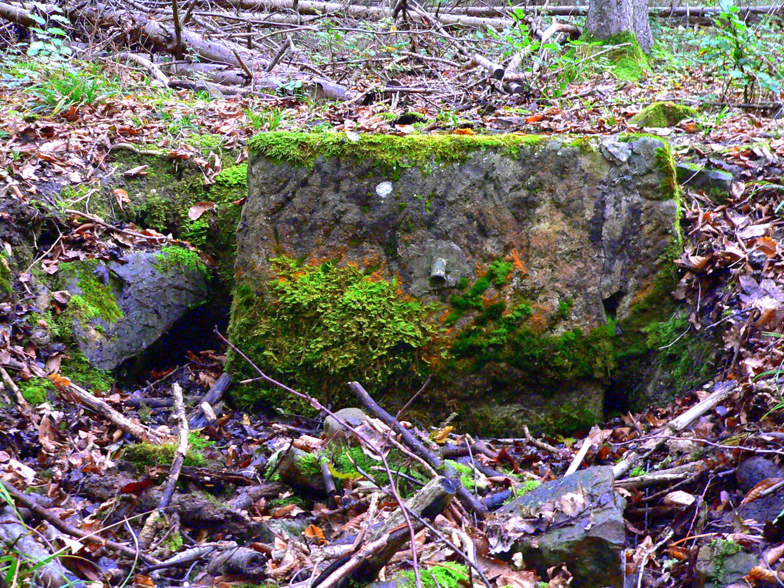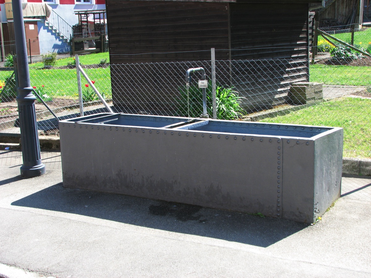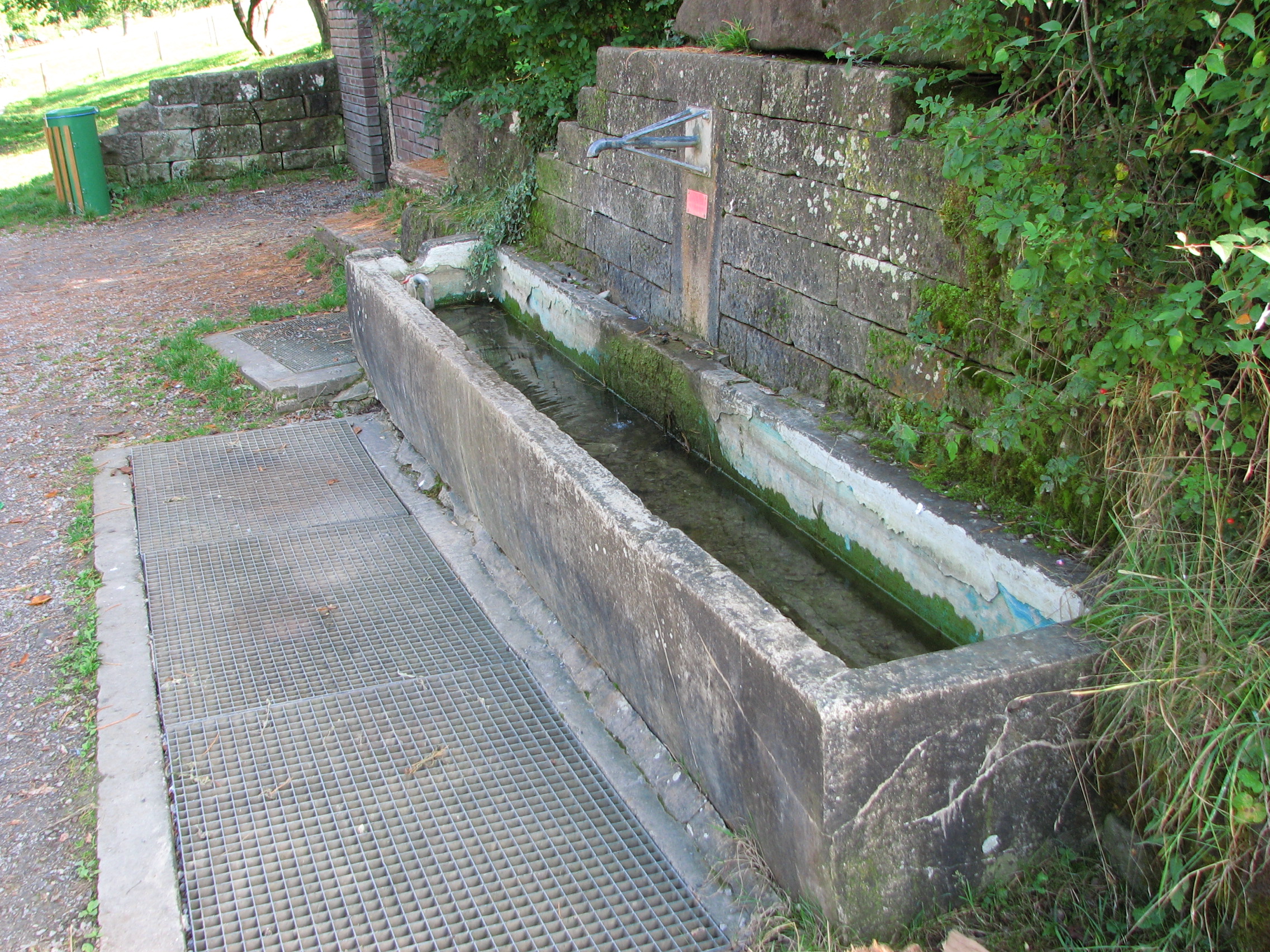 Brunnenstube für „Immenbach- oder Gaiernbrunnen“. Nur noch dreieckiges Oberteil sichtbar, der Schacht ist mit Blech abgedeckt. An der Stirnseite befindet sich ein kreisrundes Relief mit 0,26m Durchmesser. Sandstein, befriedigend erhalten. 0,50m hoch, 1,10m breit, 0,53m tief.