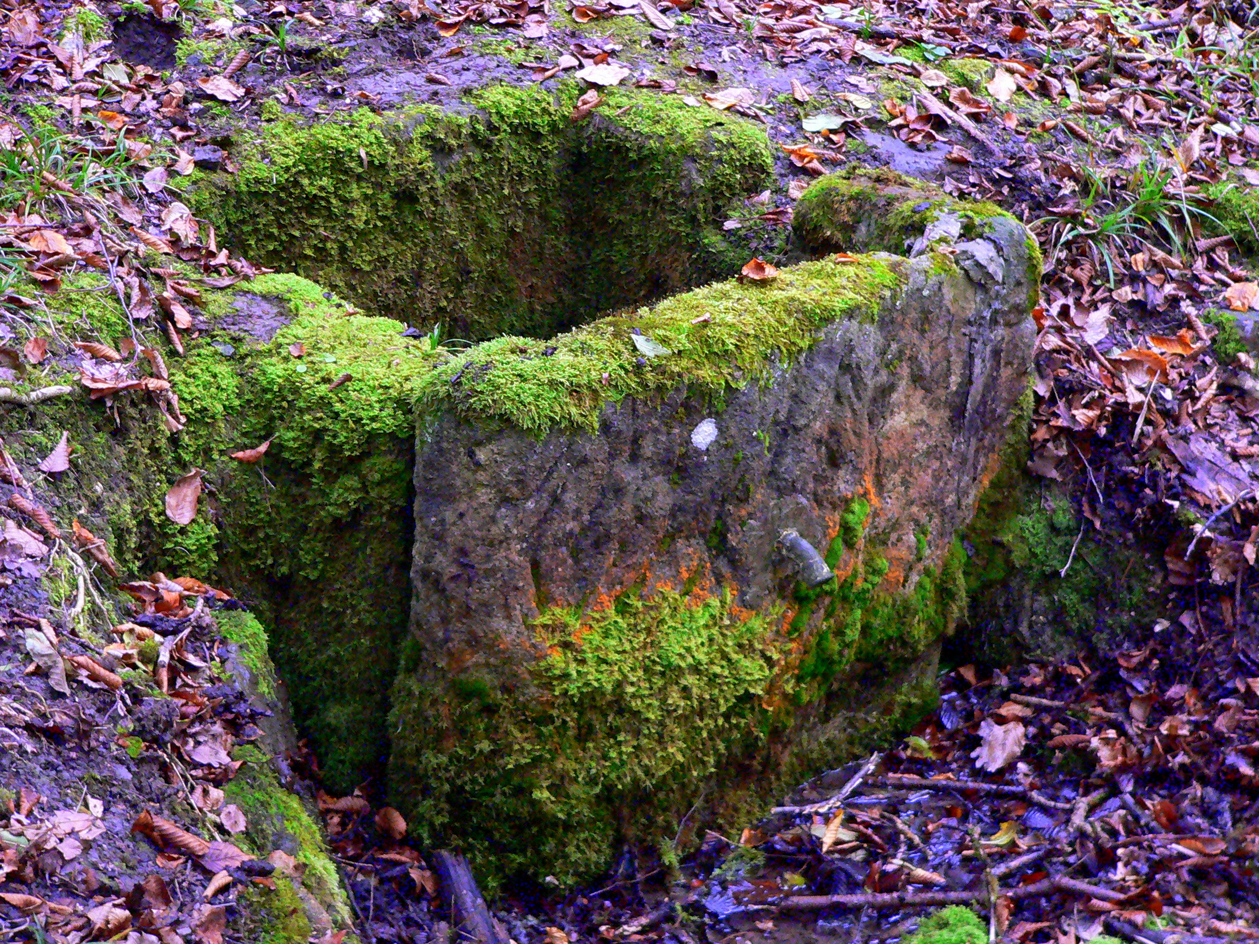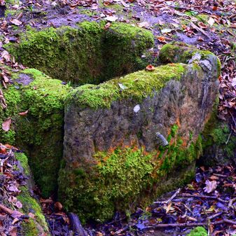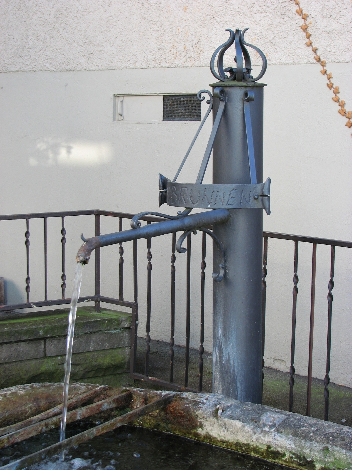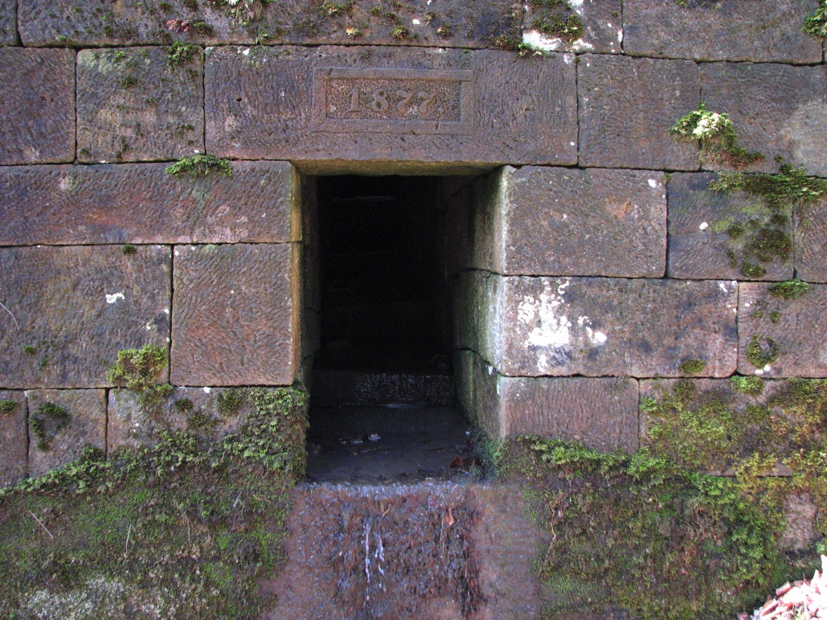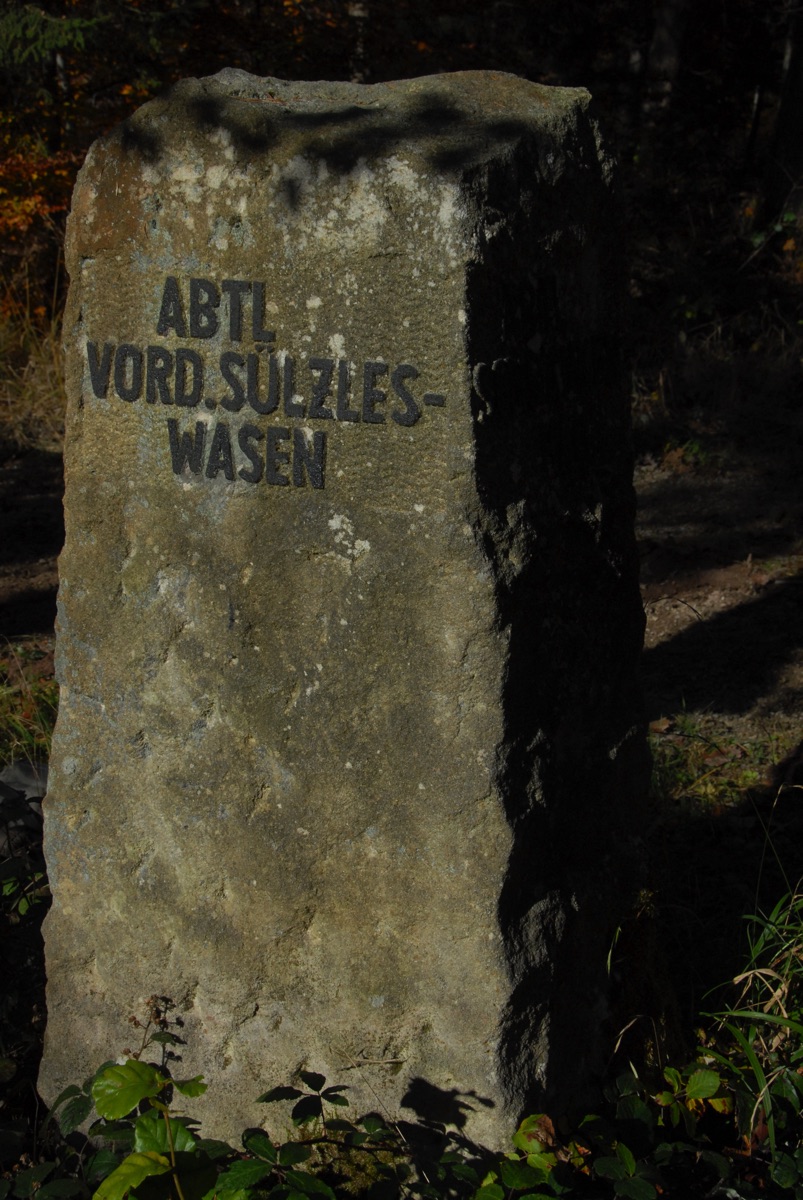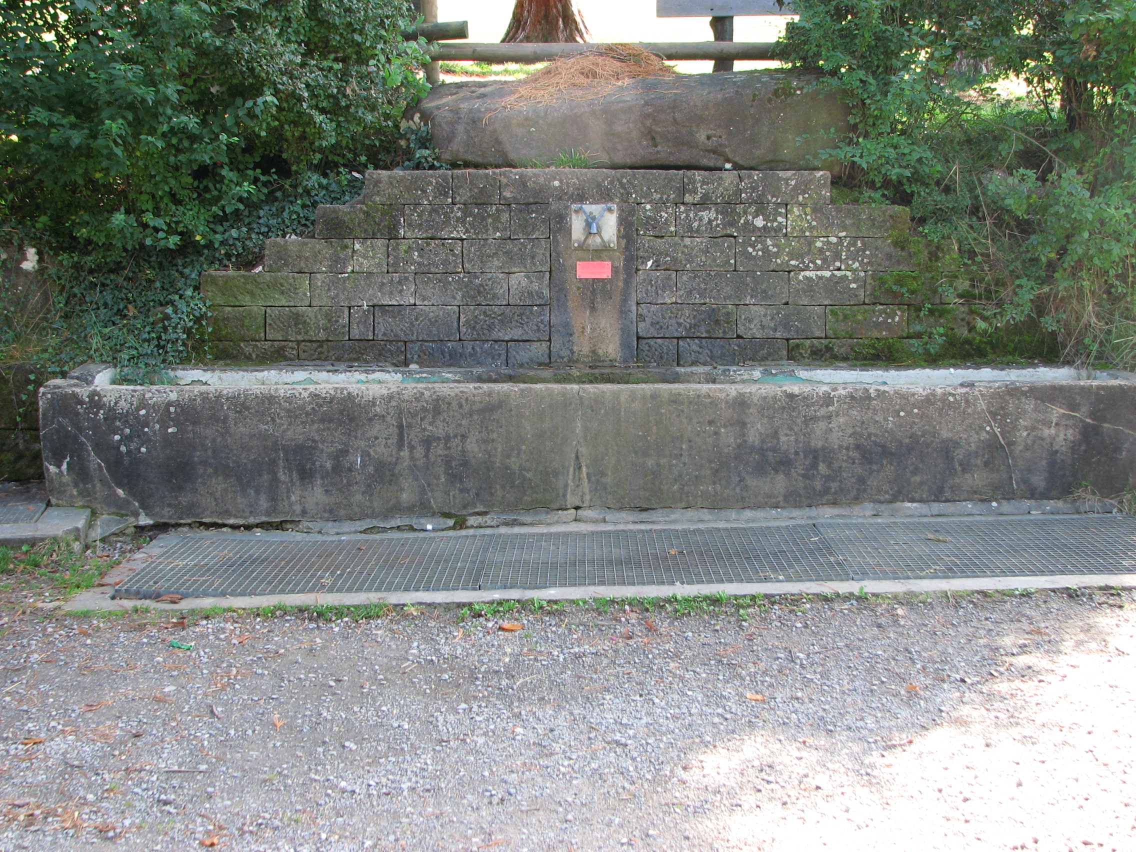 Brunnenstube für „Immenbach- oder Gaiernbrunnen“. Nur noch dreieckiges Oberteil sichtbar, der Schacht ist mit Blech abgedeckt. An der Stirnseite befindet sich ein kreisrundes Relief mit 0,26m Durchmesser. Sandstein, befriedigend erhalten. 0,50m hoch, 1,10m breit, 0,53m tief.