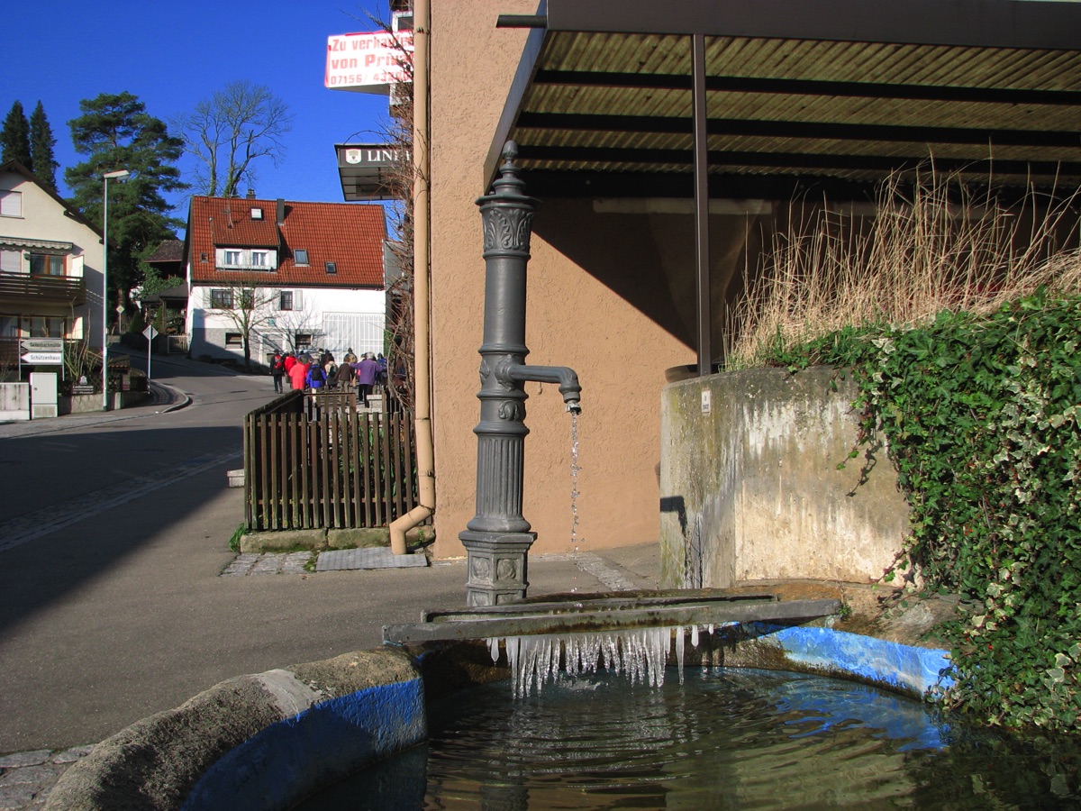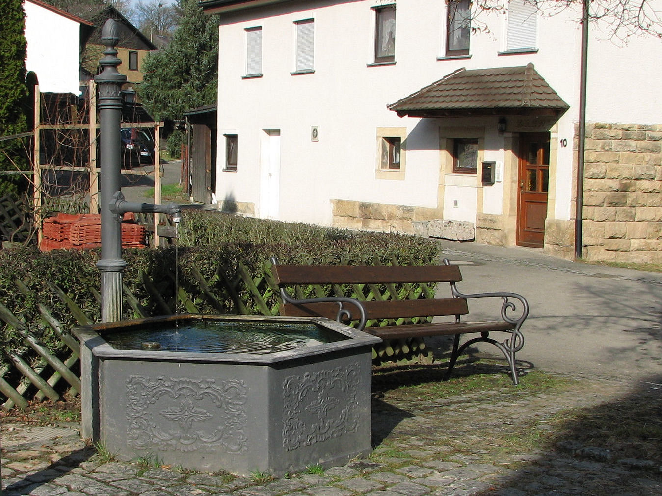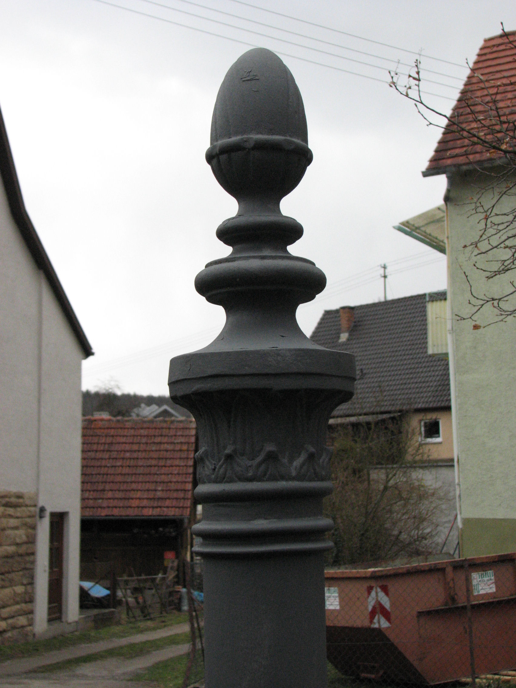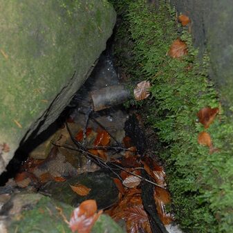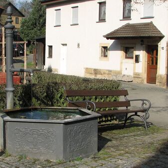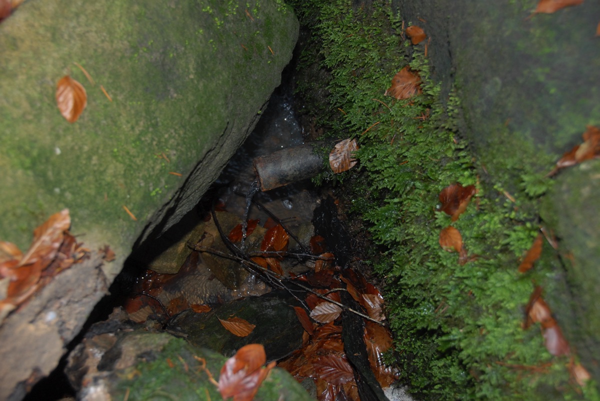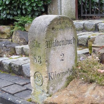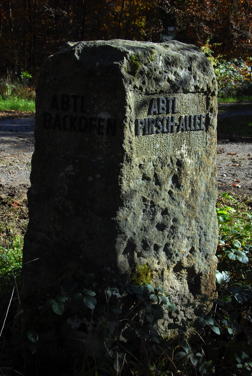 Brunnenstube für „Immenbach- oder Gaiernbrunnen“. Nur noch dreieckiges Oberteil sichtbar, der Schacht ist mit Blech abgedeckt. An der Stirnseite befindet sich ein kreisrundes Relief mit 0,26m Durchmesser. Sandstein, befriedigend erhalten. 0,50m hoch, 1,10m breit, 0,53m tief.