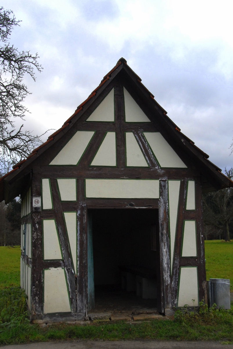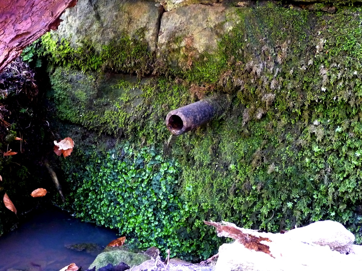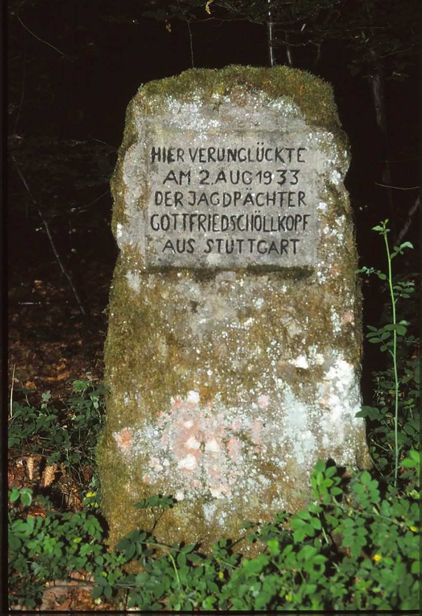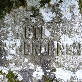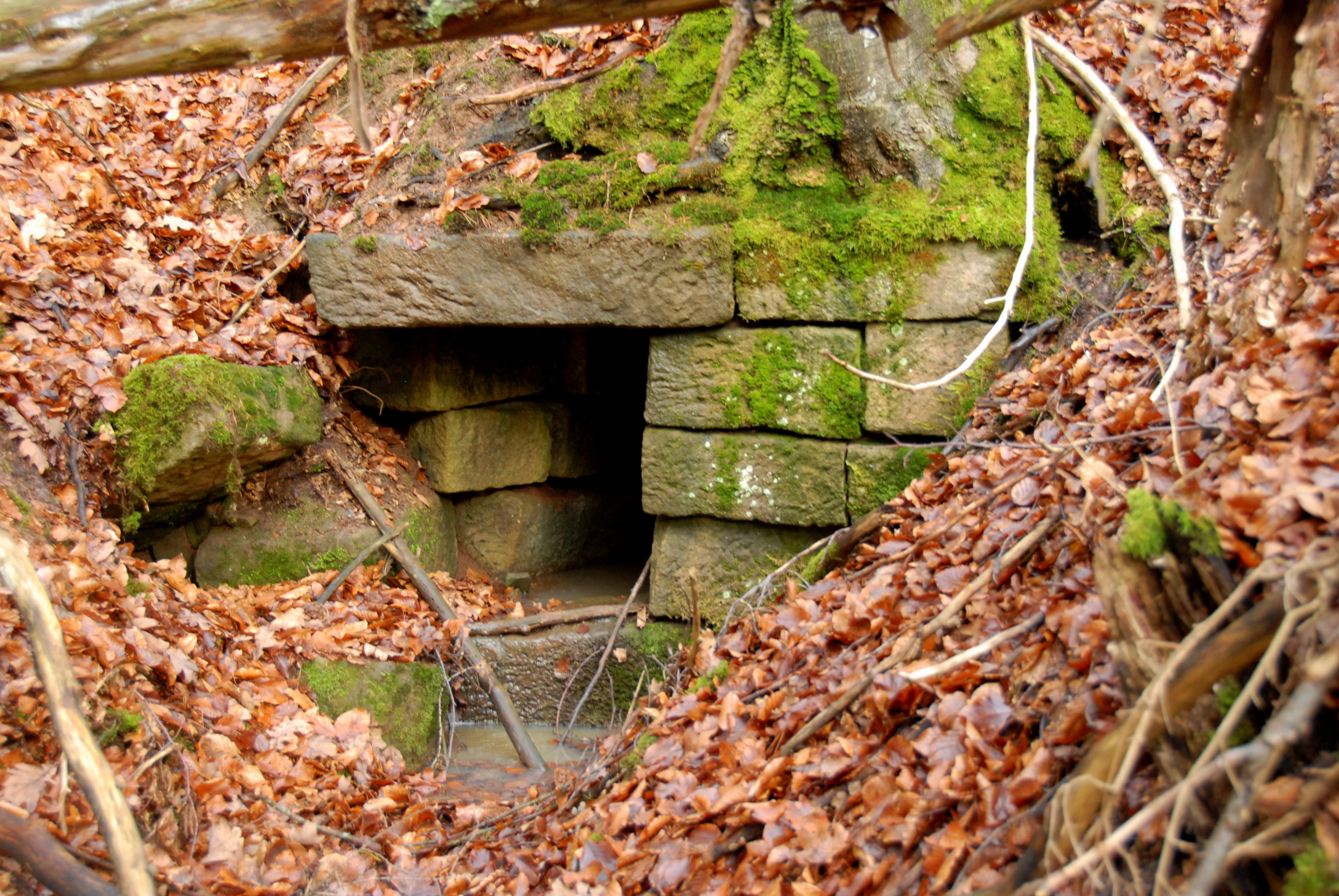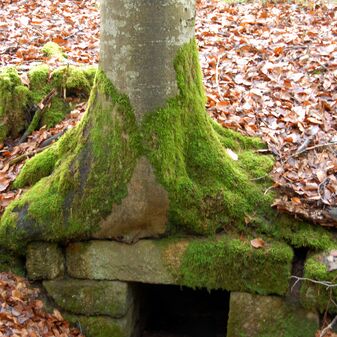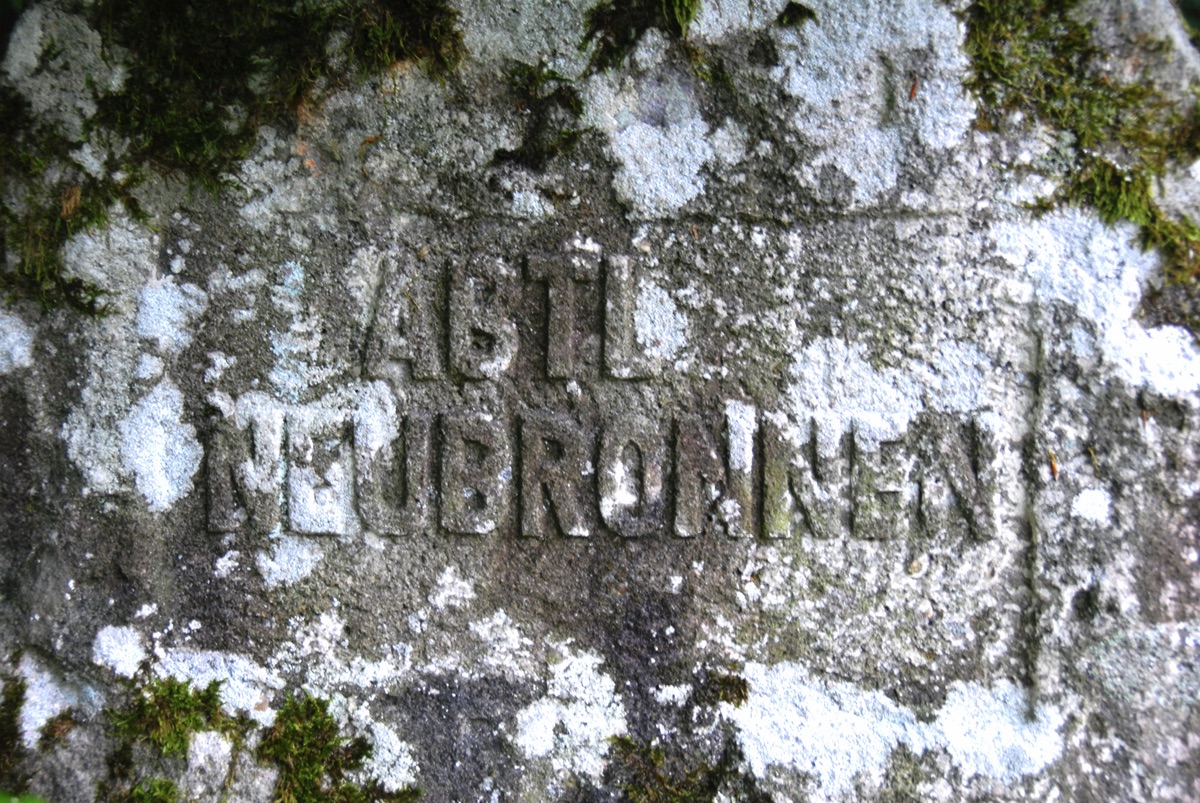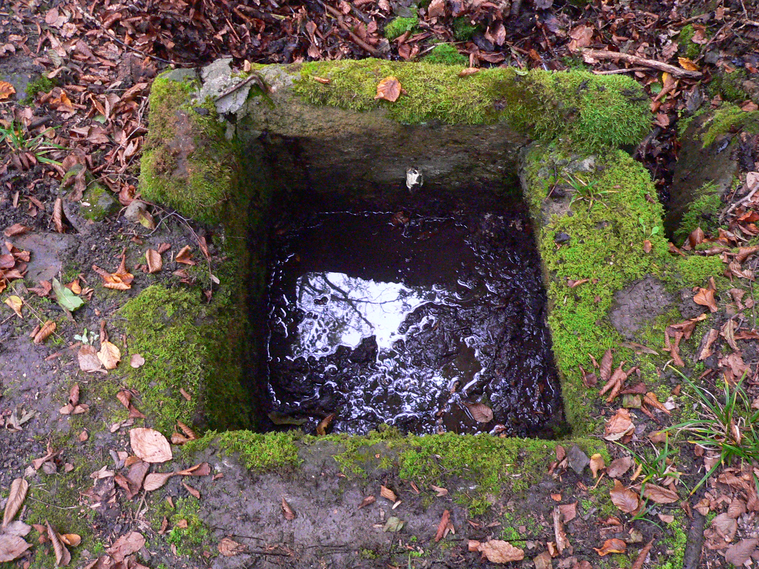 Brunnenstube für „Immenbach- oder Gaiernbrunnen“. Nur noch dreieckiges Oberteil sichtbar, der Schacht ist mit Blech abgedeckt. An der Stirnseite befindet sich ein kreisrundes Relief mit 0,26m Durchmesser. Sandstein, befriedigend erhalten. 0,50m hoch, 1,10m breit, 0,53m tief.