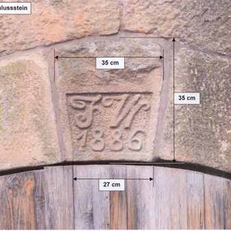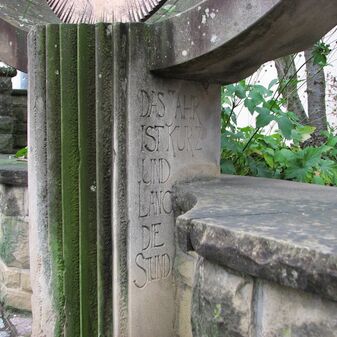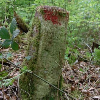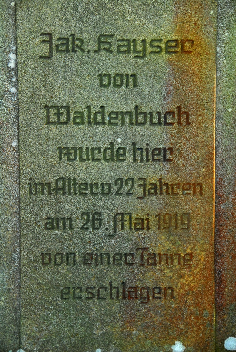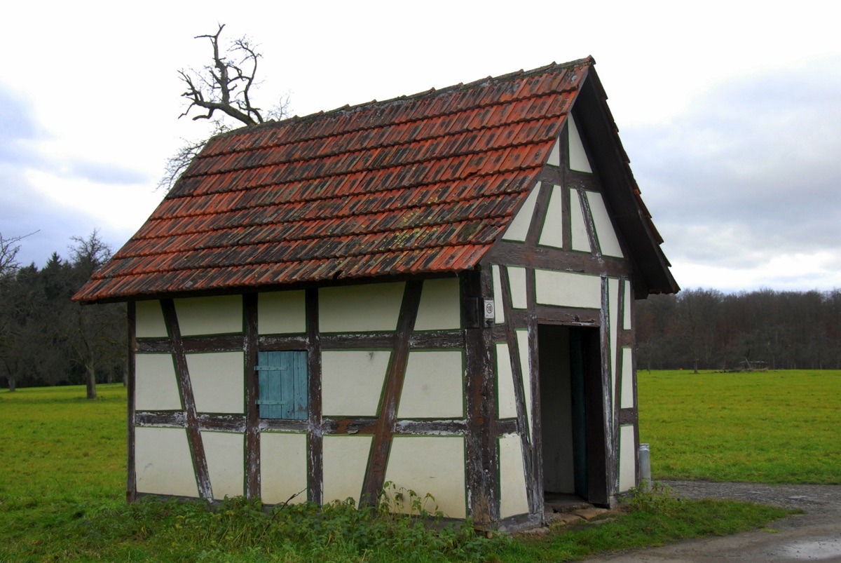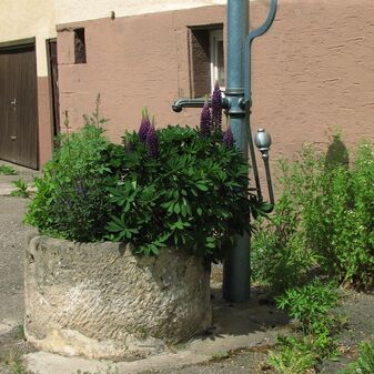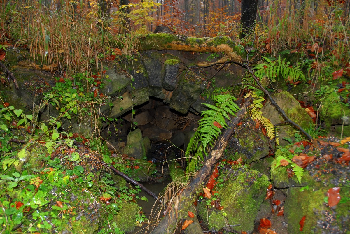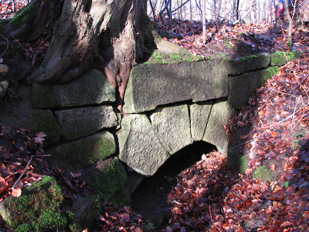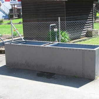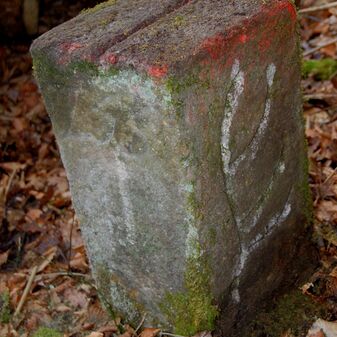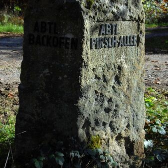 Brunnenstube für „Immenbach- oder Gaiernbrunnen“. Nur noch dreieckiges Oberteil sichtbar, der Schacht ist mit Blech abgedeckt. An der Stirnseite befindet sich ein kreisrundes Relief mit 0,26m Durchmesser. Sandstein, befriedigend erhalten. 0,50m hoch, 1,10m breit, 0,53m tief.