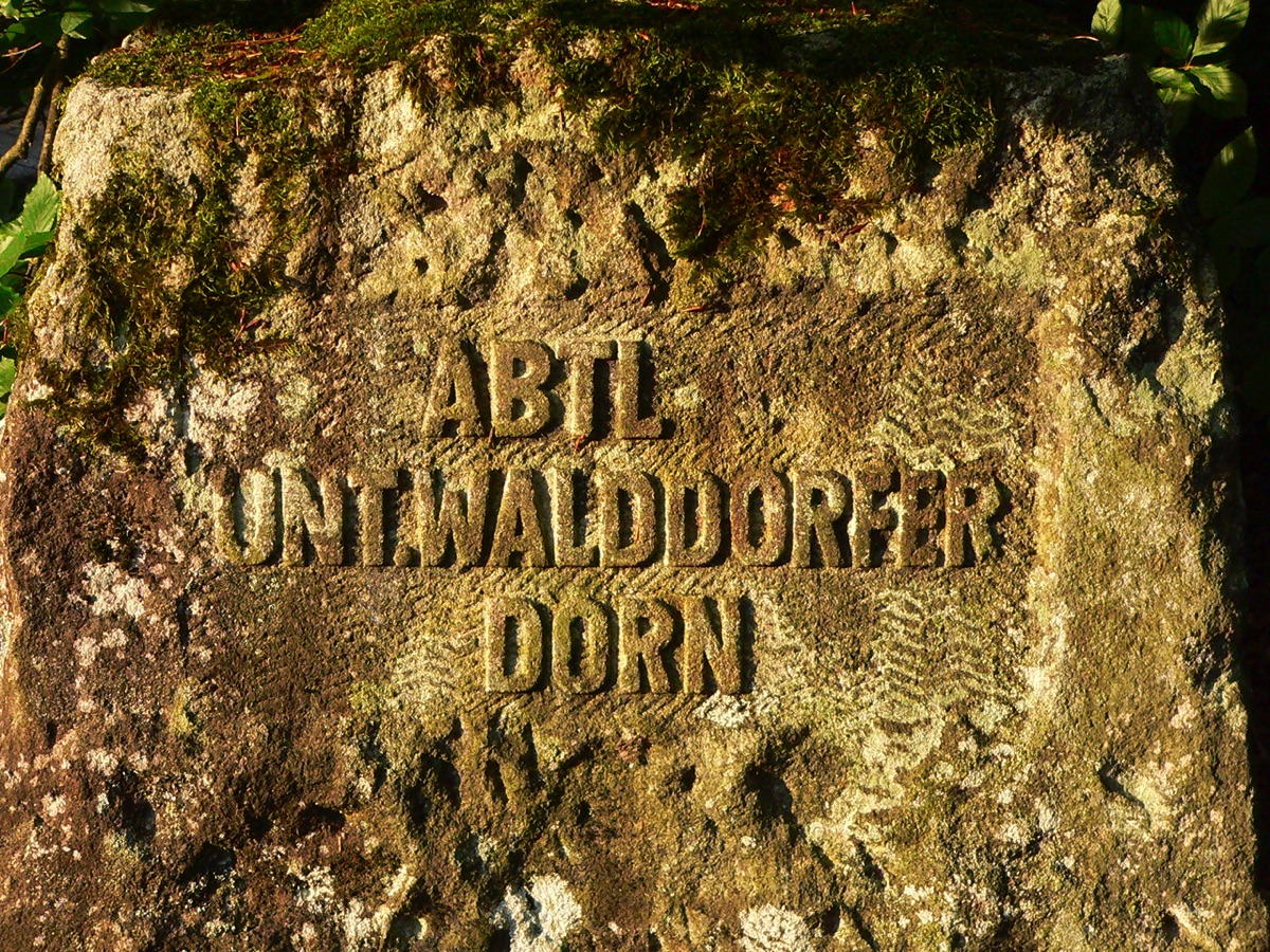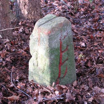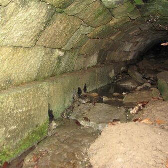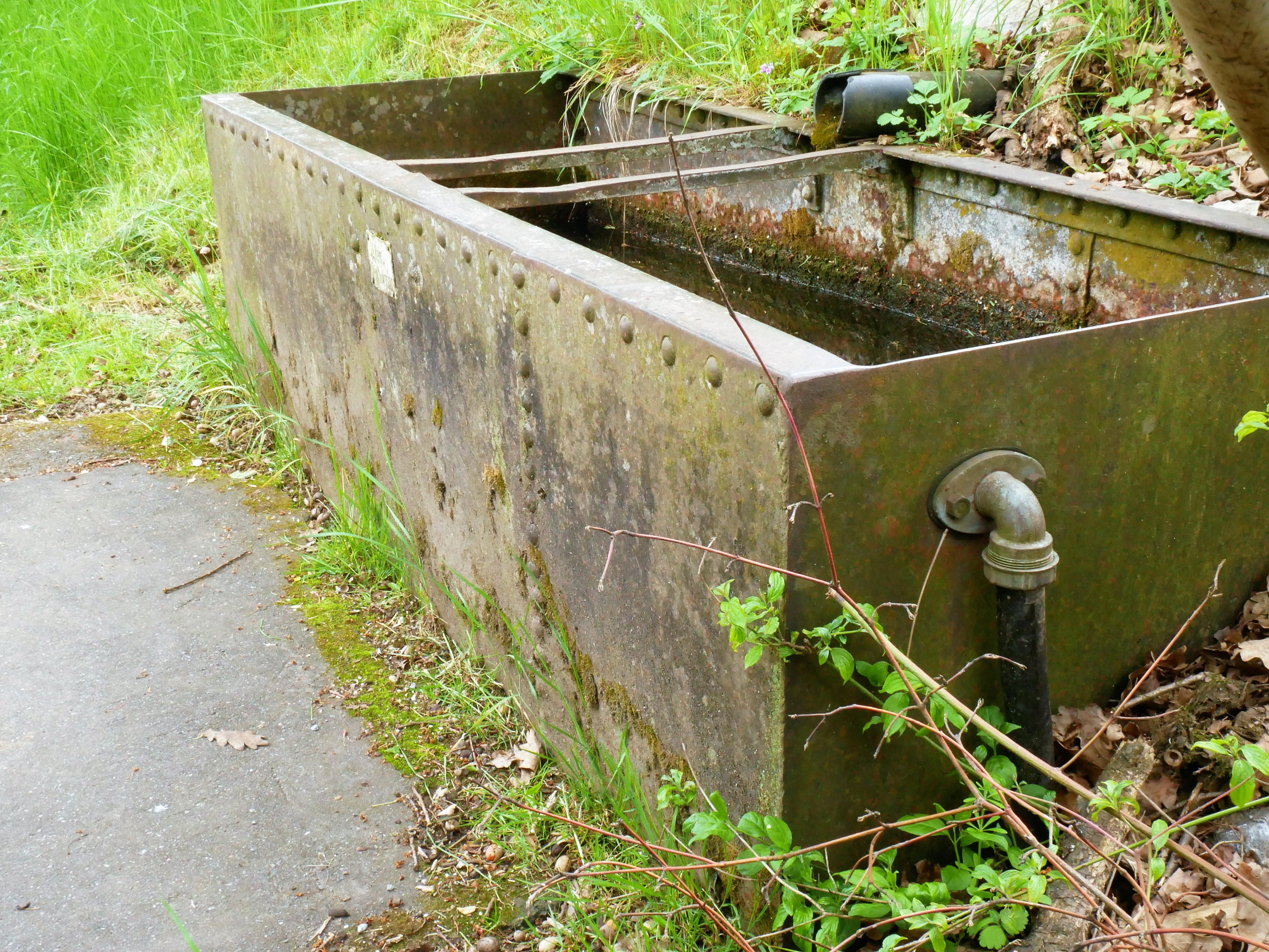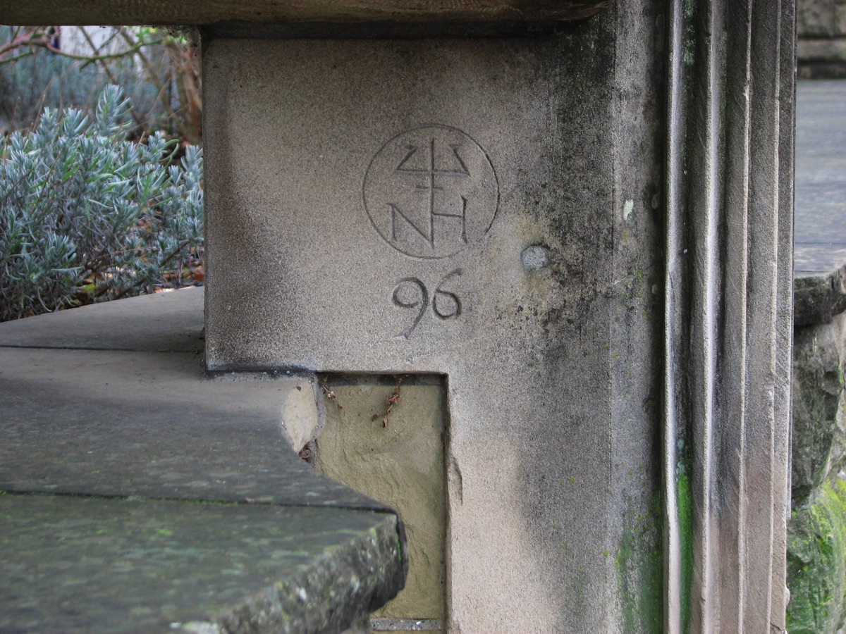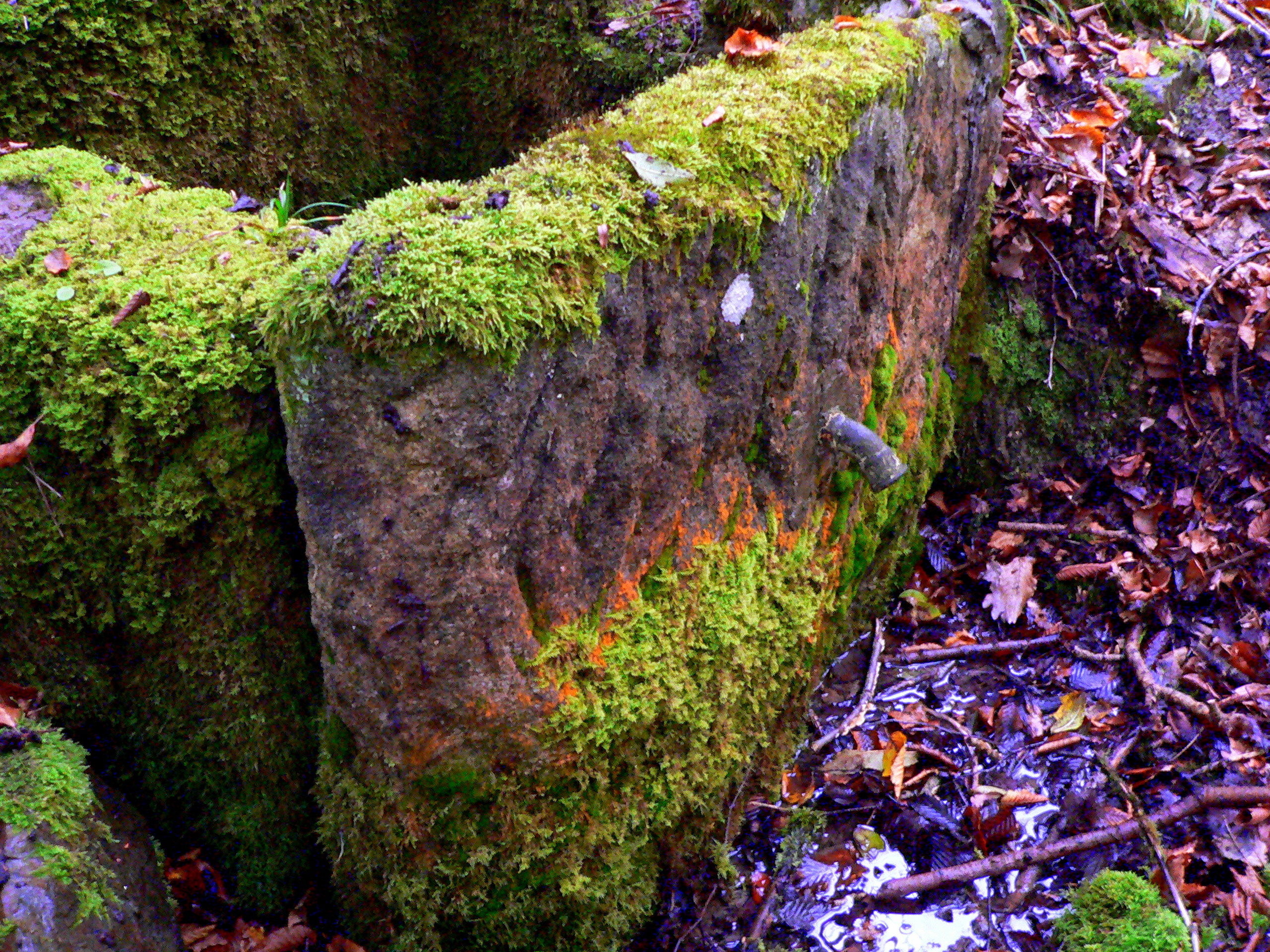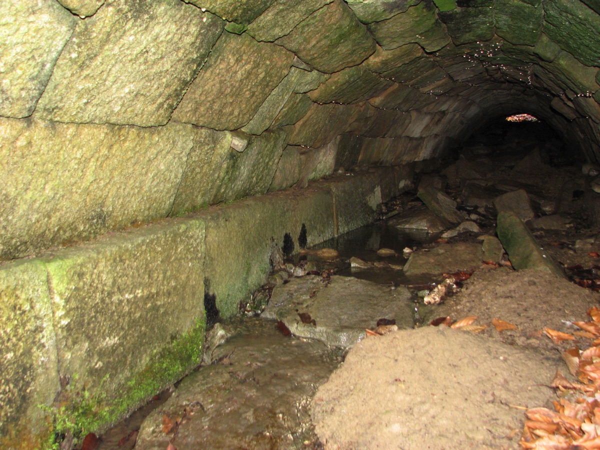 Brunnenstube für „Immenbach- oder Gaiernbrunnen“. Nur noch dreieckiges Oberteil sichtbar, der Schacht ist mit Blech abgedeckt. An der Stirnseite befindet sich ein kreisrundes Relief mit 0,26m Durchmesser. Sandstein, befriedigend erhalten. 0,50m hoch, 1,10m breit, 0,53m tief.