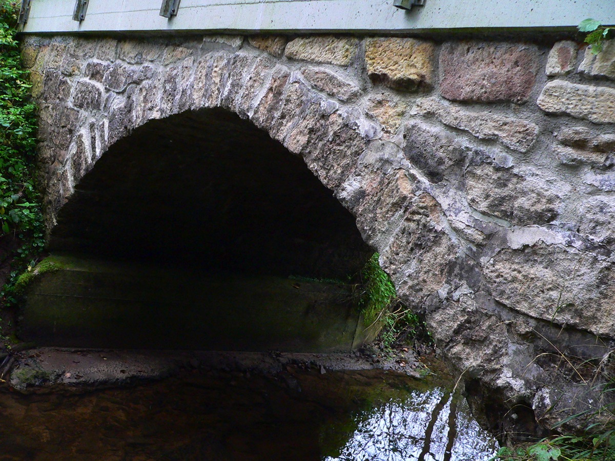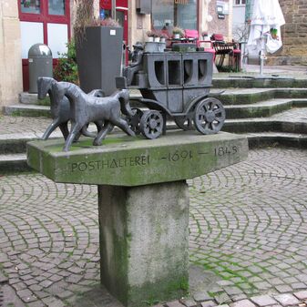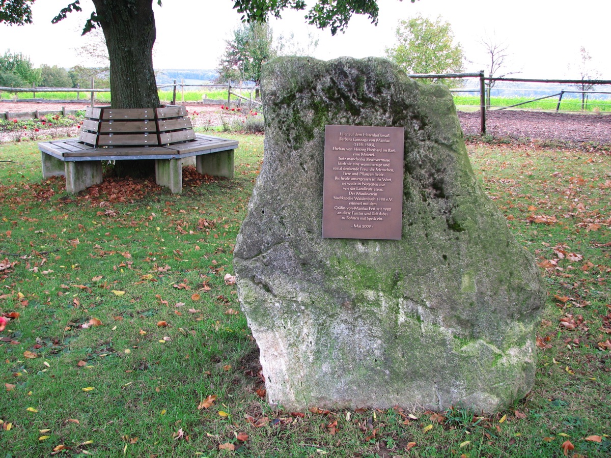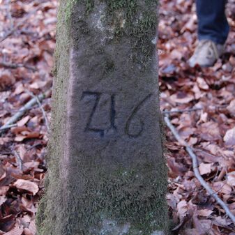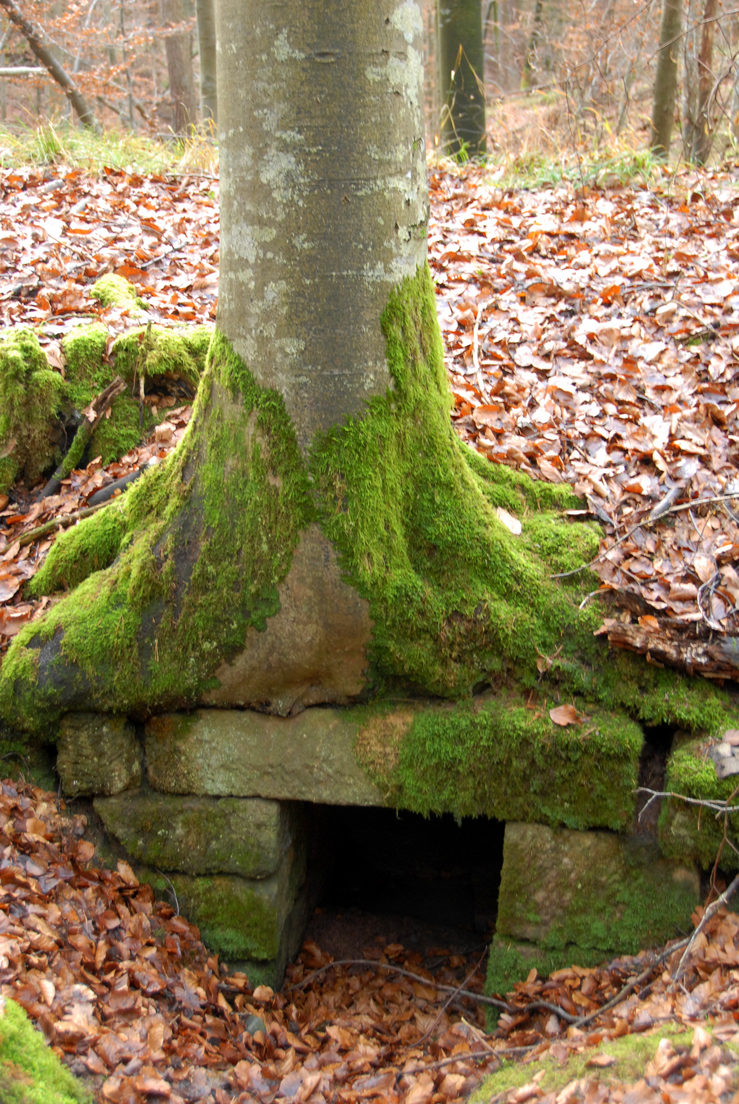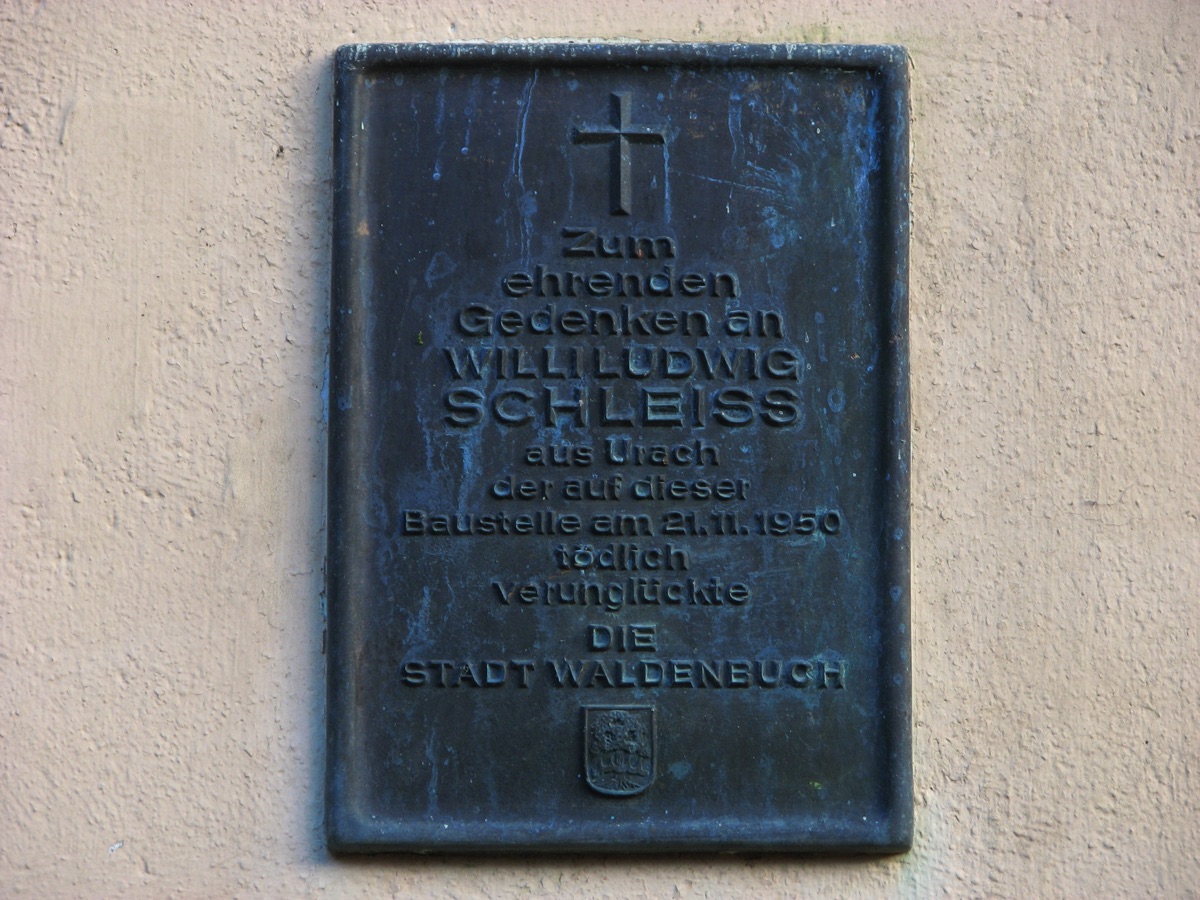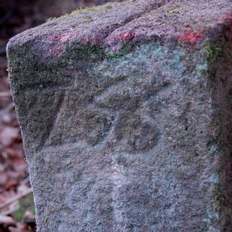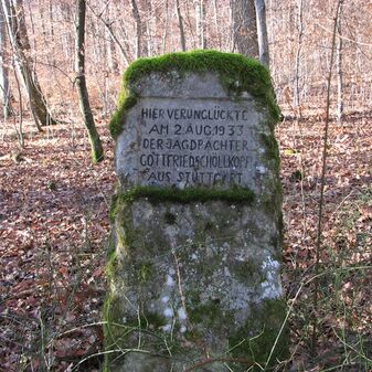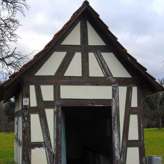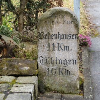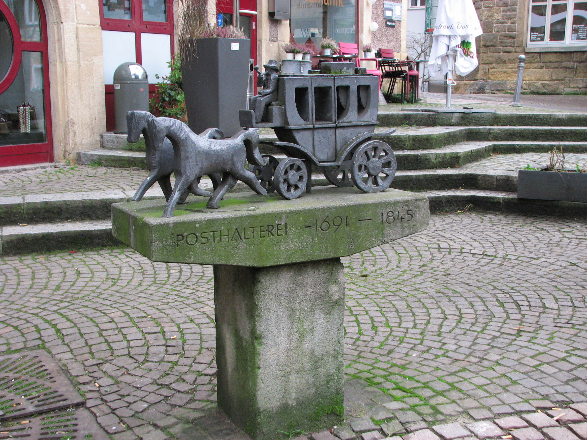 Brunnenstube für „Immenbach- oder Gaiernbrunnen“. Nur noch dreieckiges Oberteil sichtbar, der Schacht ist mit Blech abgedeckt. An der Stirnseite befindet sich ein kreisrundes Relief mit 0,26m Durchmesser. Sandstein, befriedigend erhalten. 0,50m hoch, 1,10m breit, 0,53m tief.