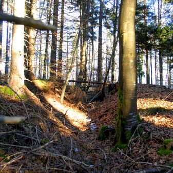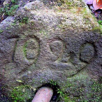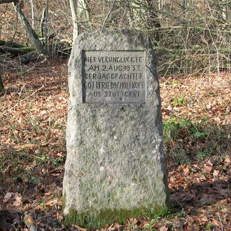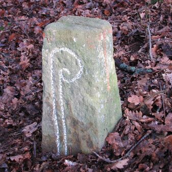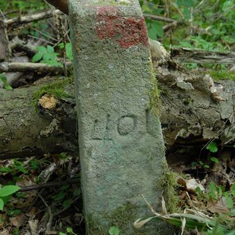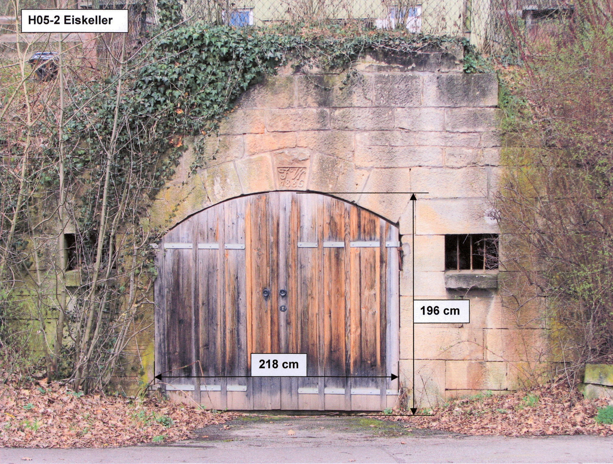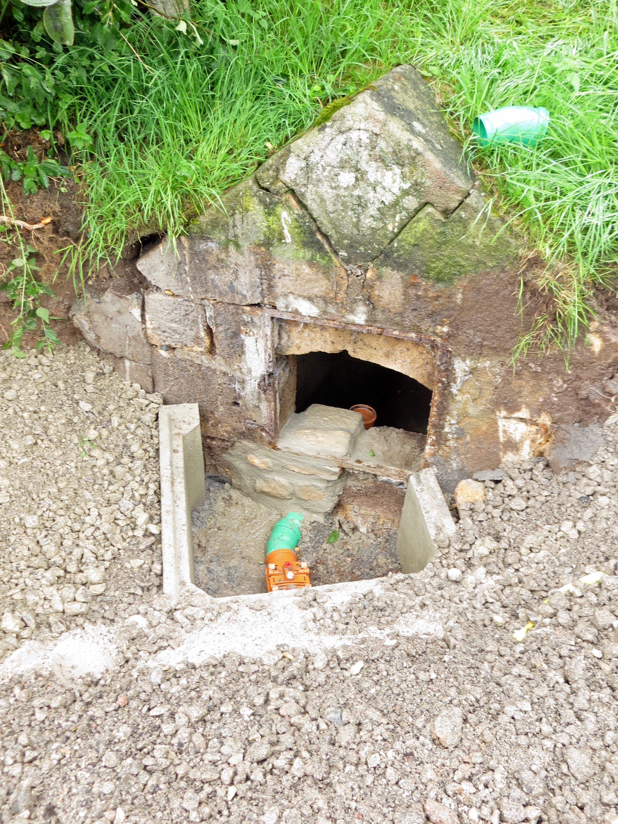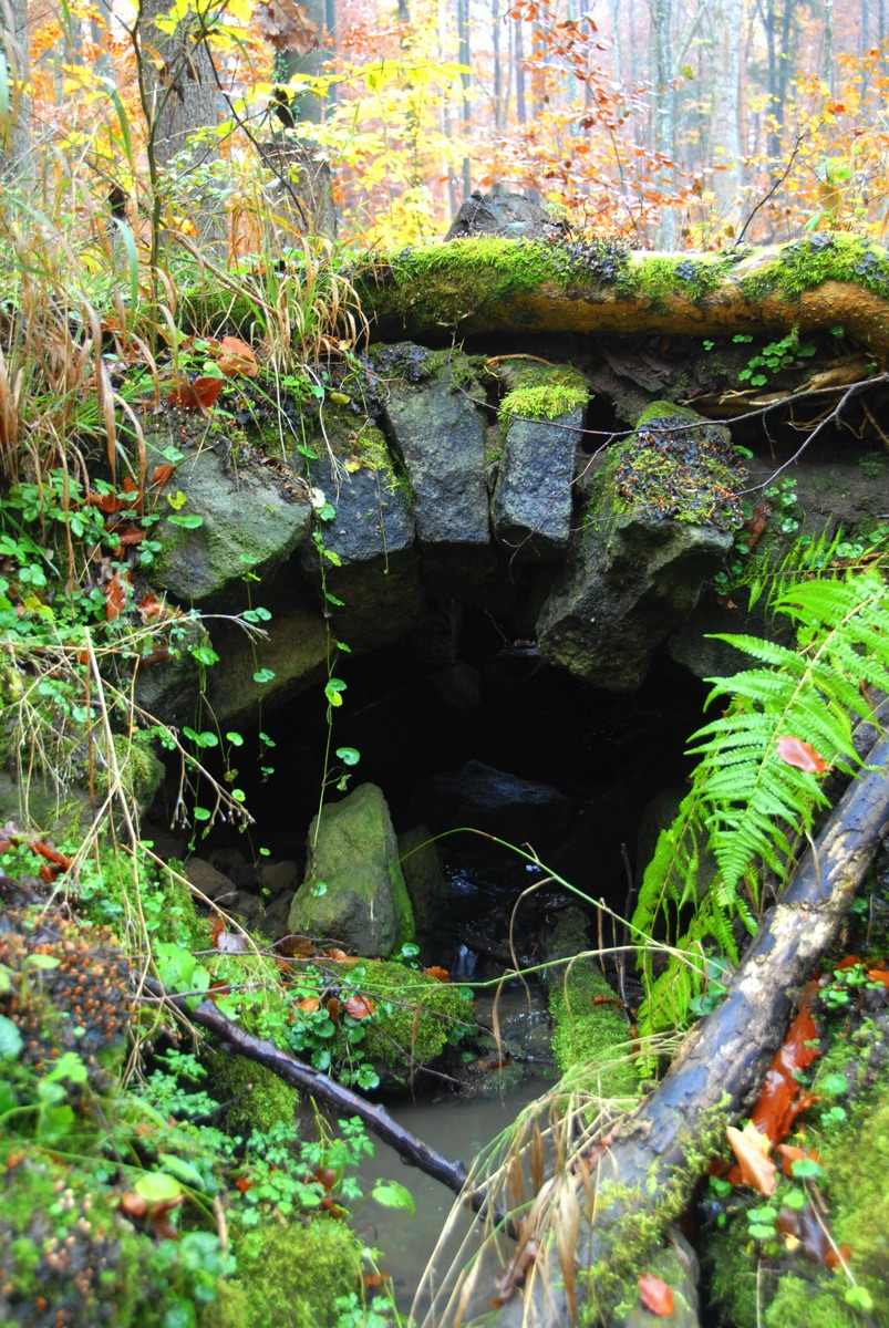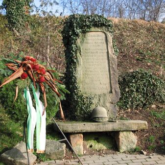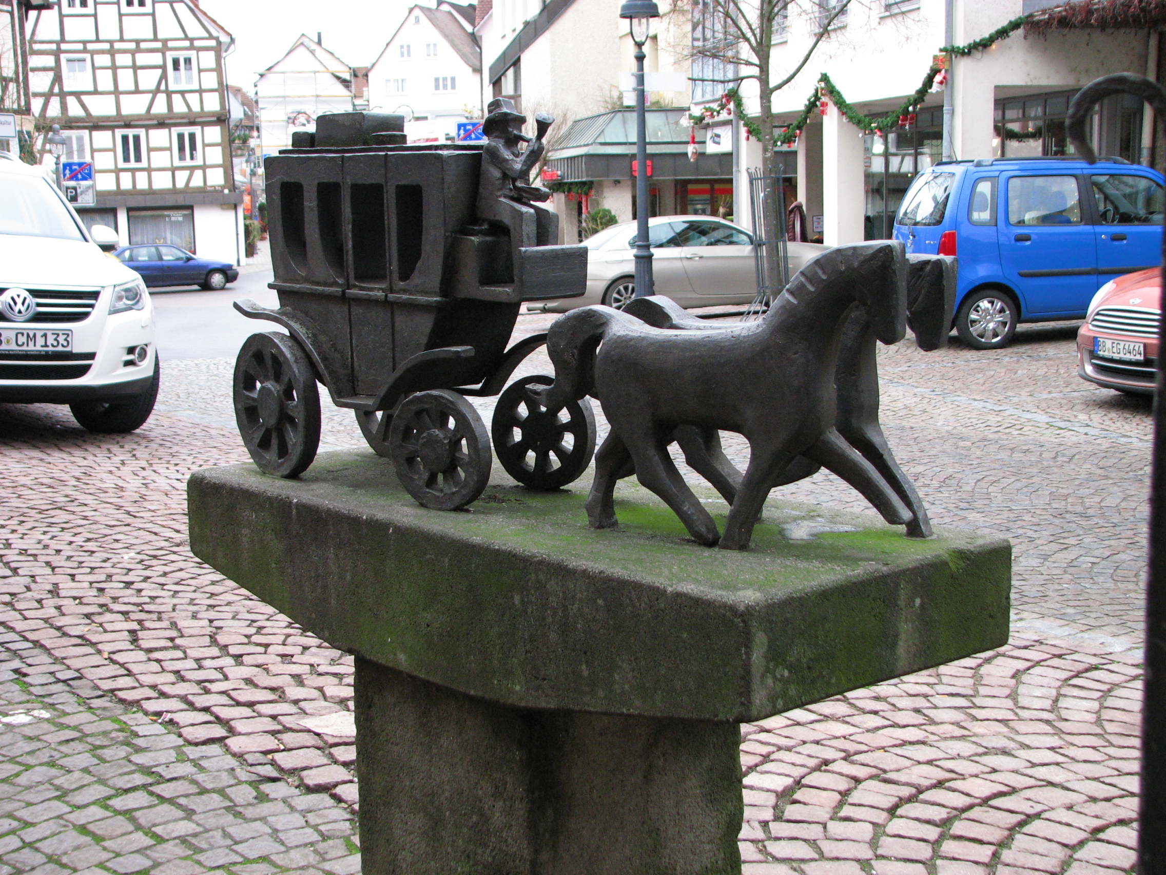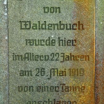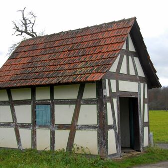 Brunnenstube für „Immenbach- oder Gaiernbrunnen“. Nur noch dreieckiges Oberteil sichtbar, der Schacht ist mit Blech abgedeckt. An der Stirnseite befindet sich ein kreisrundes Relief mit 0,26m Durchmesser. Sandstein, befriedigend erhalten. 0,50m hoch, 1,10m breit, 0,53m tief.